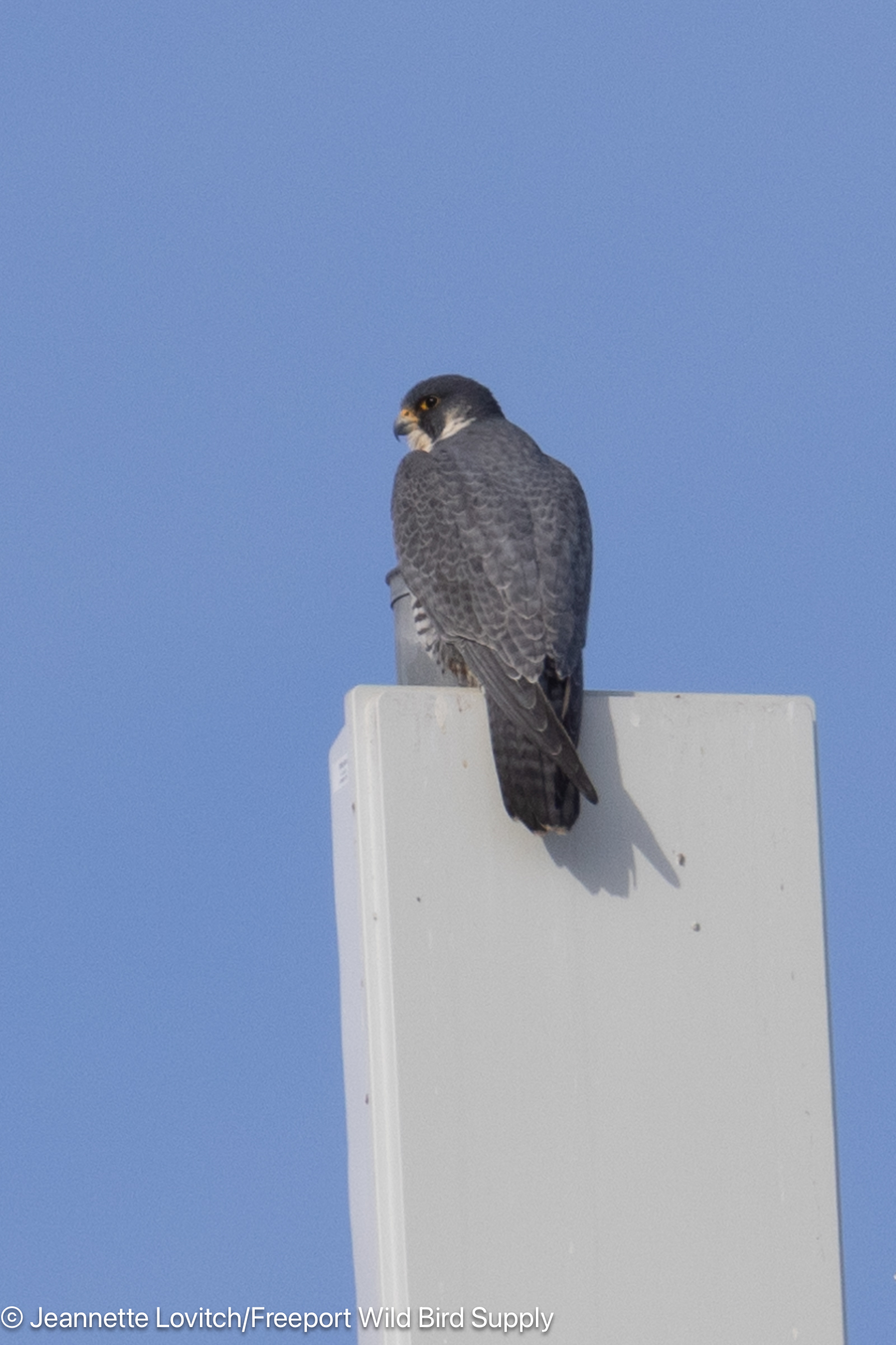 The pair of Peregrine Falcons that have been overwintering in Lewiston-Auburn for the past decade or so continue to frequent the area around the Bernard Lown Peace Bridge and Cedar Street, as here on the 10th.
