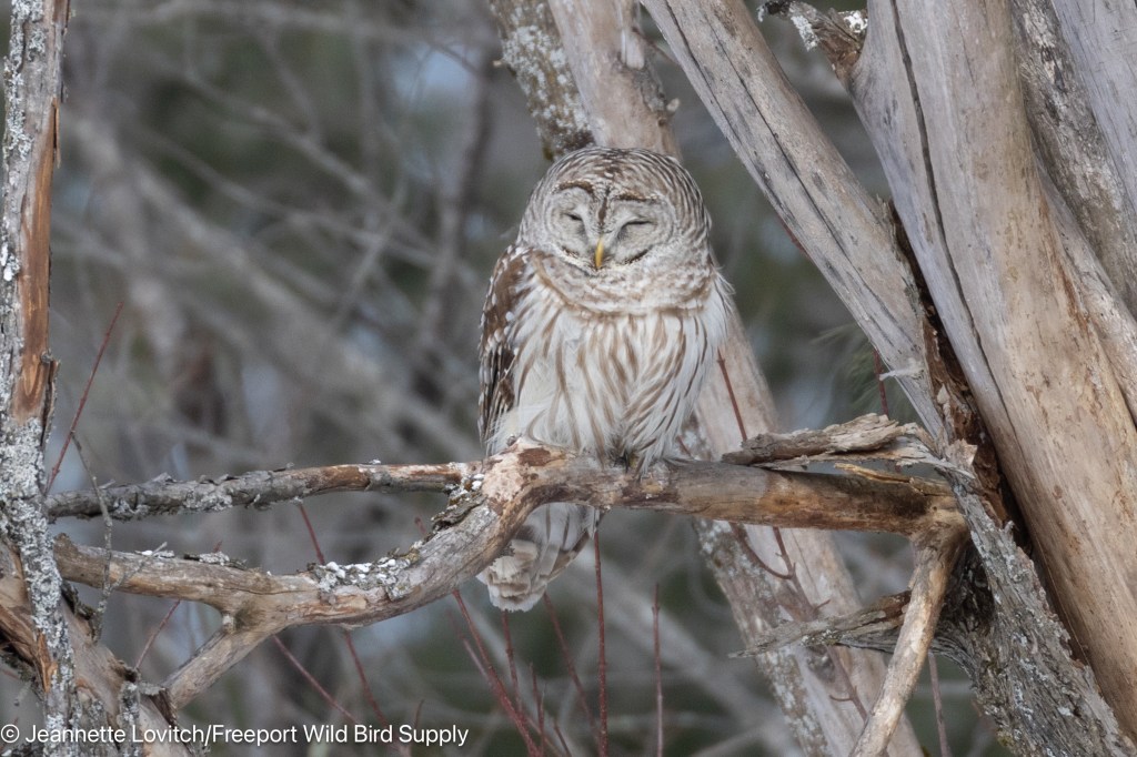 We didn’t have any seasonal rarities like last year’s Gray Catbird and Fox Sparrow, but we have had a Barred Owl hunting the edge of our “homestead” area including near the feeders on and off for the past couple of weeks. Certainly the excitement of this count period was on the 5th, when an immature Cooper’s Hawk took a run at something. Everything flushed. Then, a Barred Owl came gliding in and either landed on the Cooper’s Hawk or immediately next to it. The Cooper’s Hawk flew away, the Barred Owl looked around in snow for a moment before flying into tree.