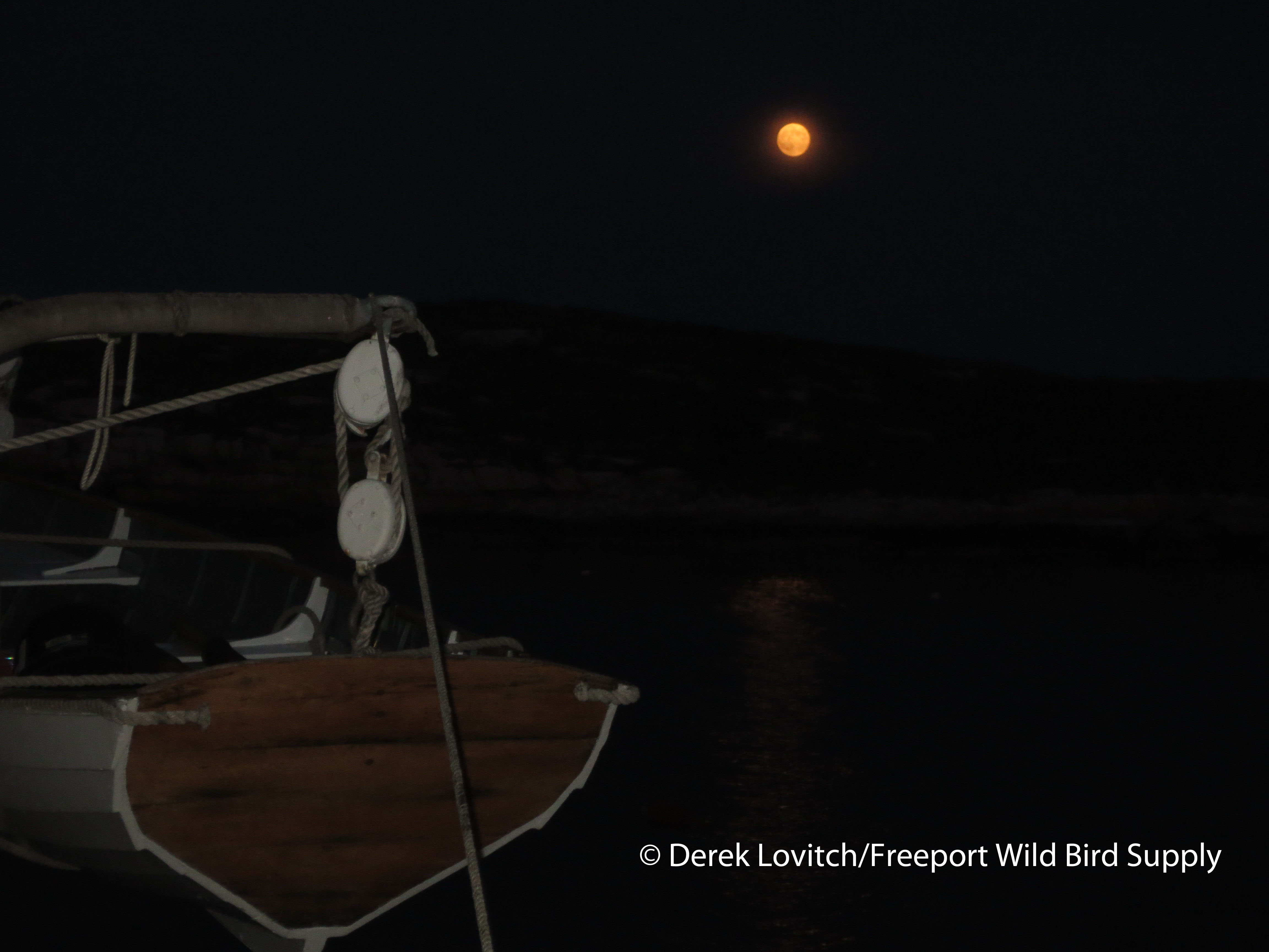 As night fell, and a near-full moon rose, many of the birders on board delayed retiring to their bunk until Leach’s Storm-Petrels – who only visit their burrow nests under the cover of night – began to vocalize. There were only three of us left on deck by 10:00, when I turned in. The one birder, our good friend Chris, however, stayed topside (and another birder slept on deck) for a while longer. Not too long after I gave in to sleep, fog rolled in, and that really got the storm-petrels to call. Chris was rewarded for his stamina with a cacophony of somewhat-disconcerting cackling chatters.