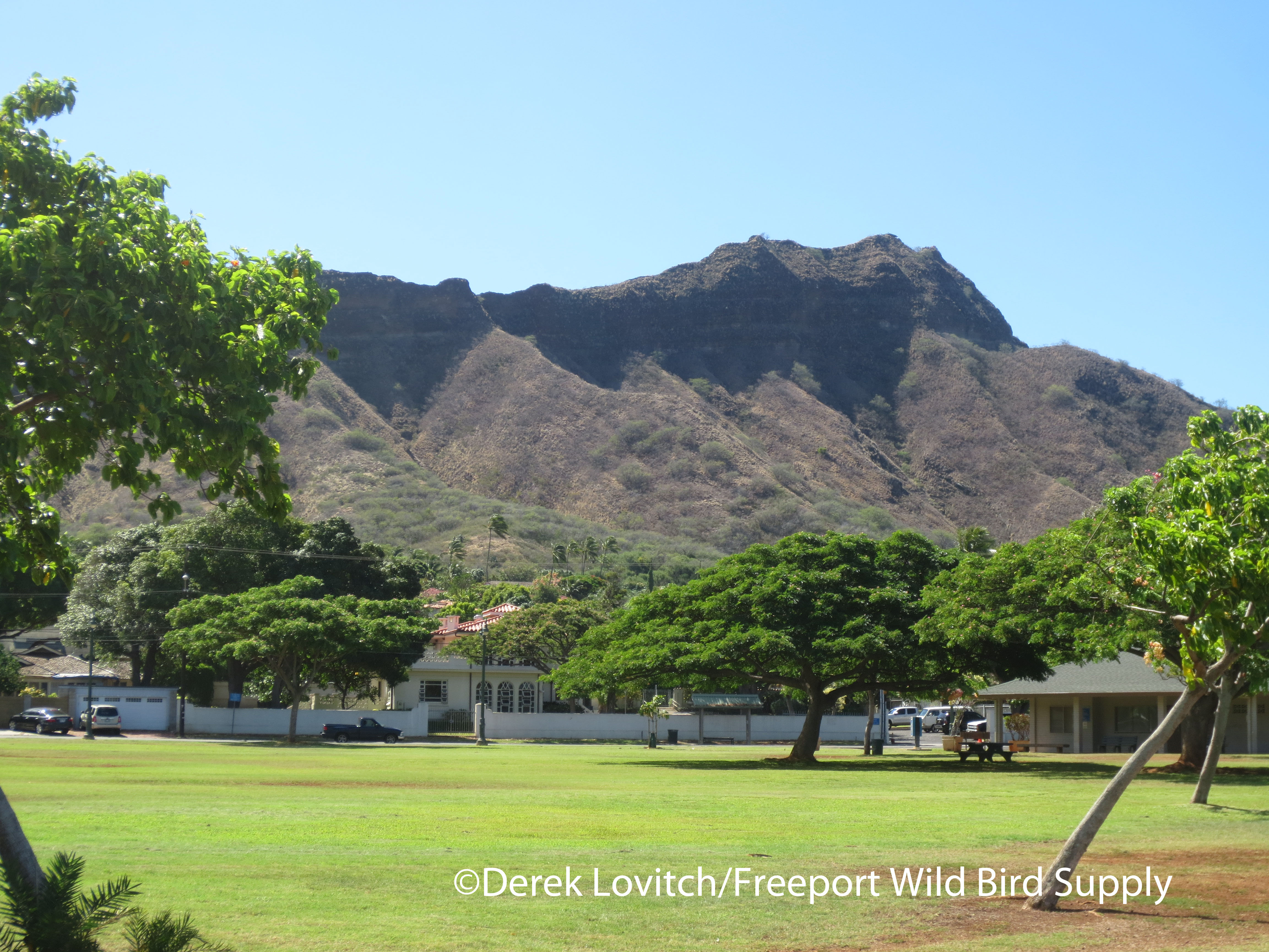Diamond Head from Kapiolani Park and Java Sparrows.