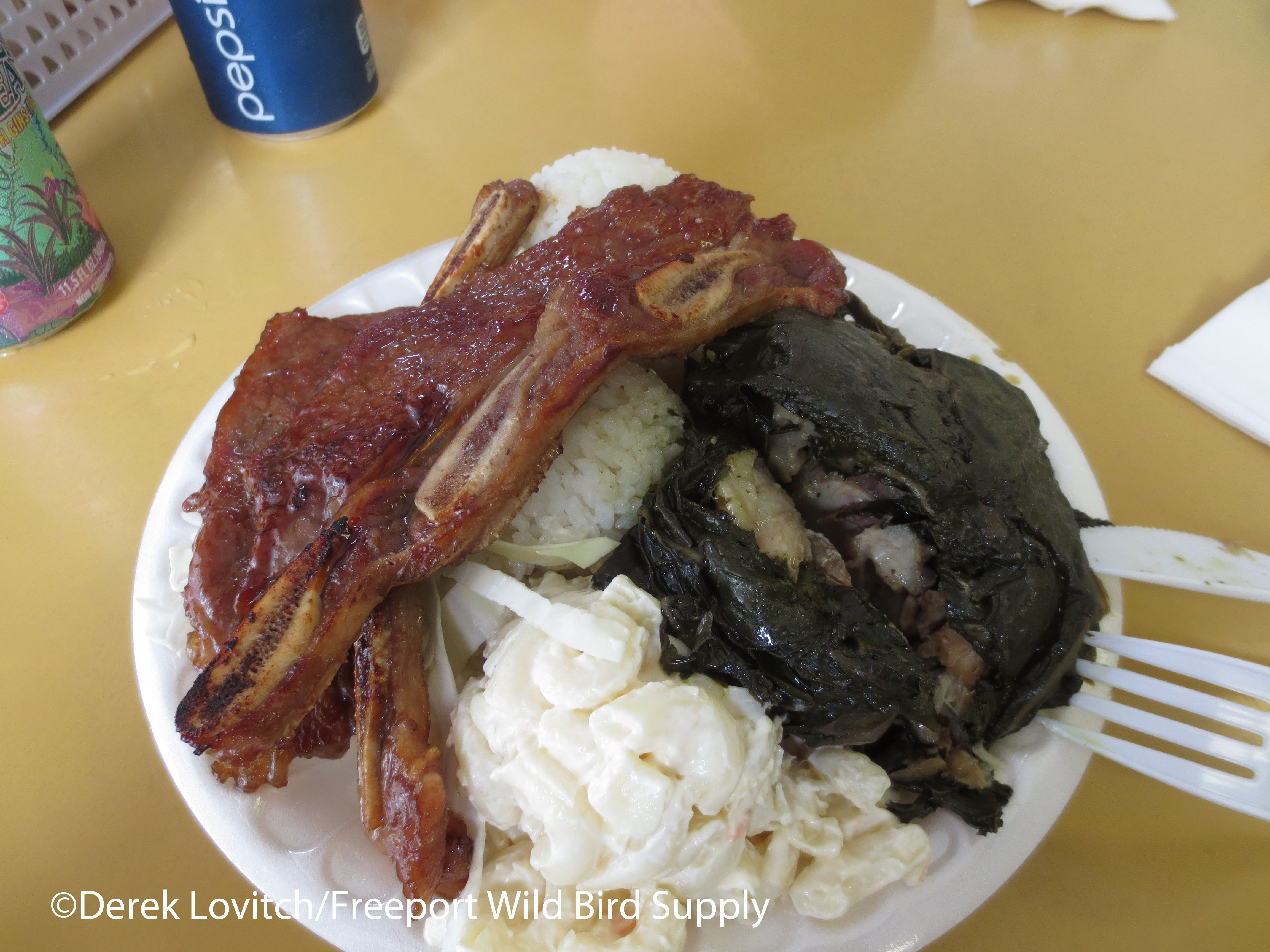 Afterwards, we found a perfectly-Hawaiian hole-in-the-wall “plate lunch” joint where I savored Hawaiian-style short ribs and Lau Lau Pork (pork cooked in taro leaves), and then made our way to the airport – with a brief visit to downtown Honolulu and Ala Moana Park which hosted a few more recently-returned migrants shorebirds: 5 ’Akekeke (Ruddy Turnstones) and 4 Kolea (Pacific Golden-Plovers).
