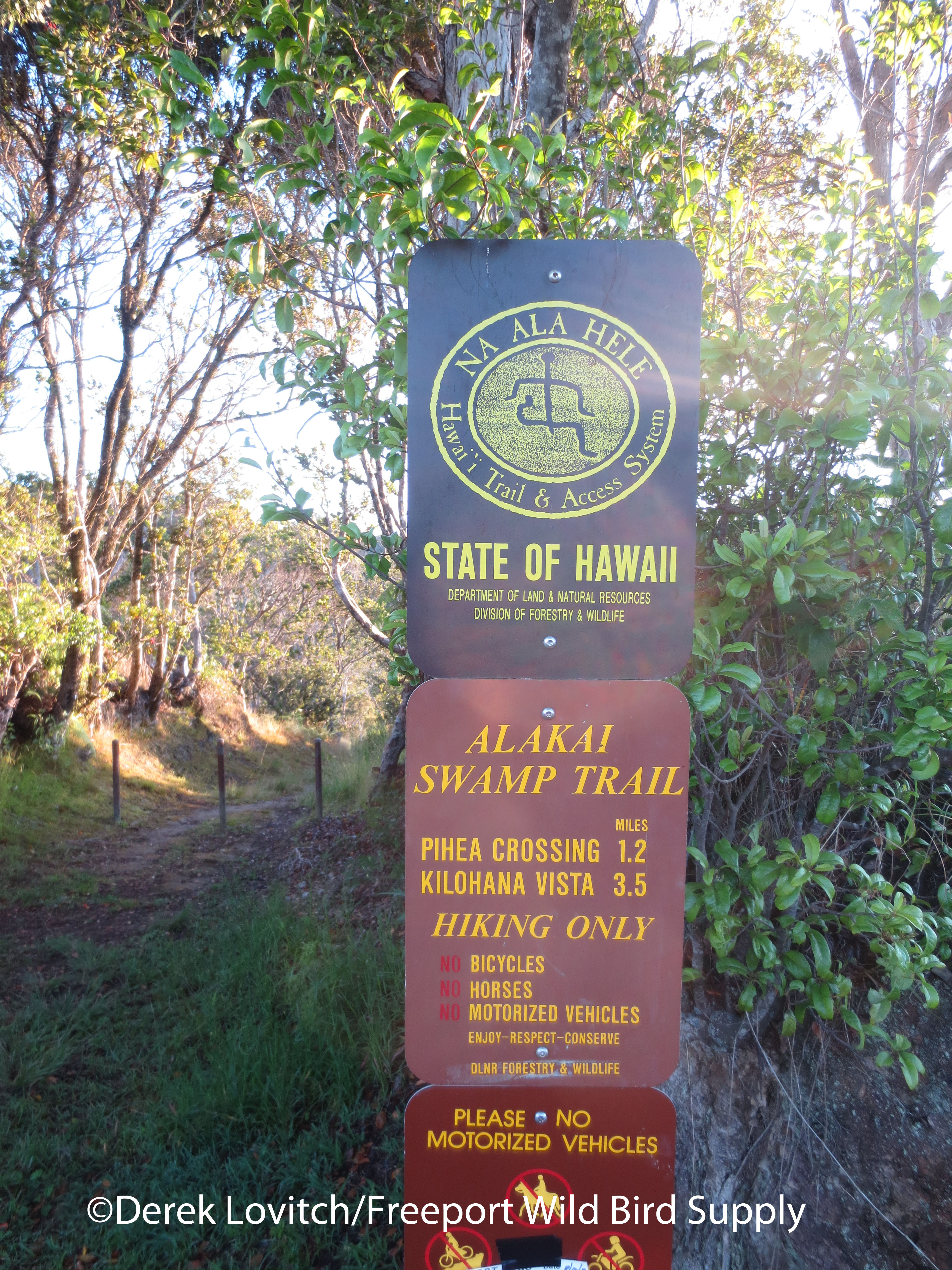 On Day 2, it was time to get to work. We met up with our friend Lance Tanino, who we got to know when he was working as the hawkcounter at New Hampshire’s Pack Monadnock hawkwatch, but now lives back in his native state leading tours and doing bird surveys through his business Manu Conservation (http://www.facebook.com/pages/Manu-Conservation/352241041463887) . We headed for the interior of the island, where Oahu’s remaining native forests, and therefore its remaining native birds, can be found.
