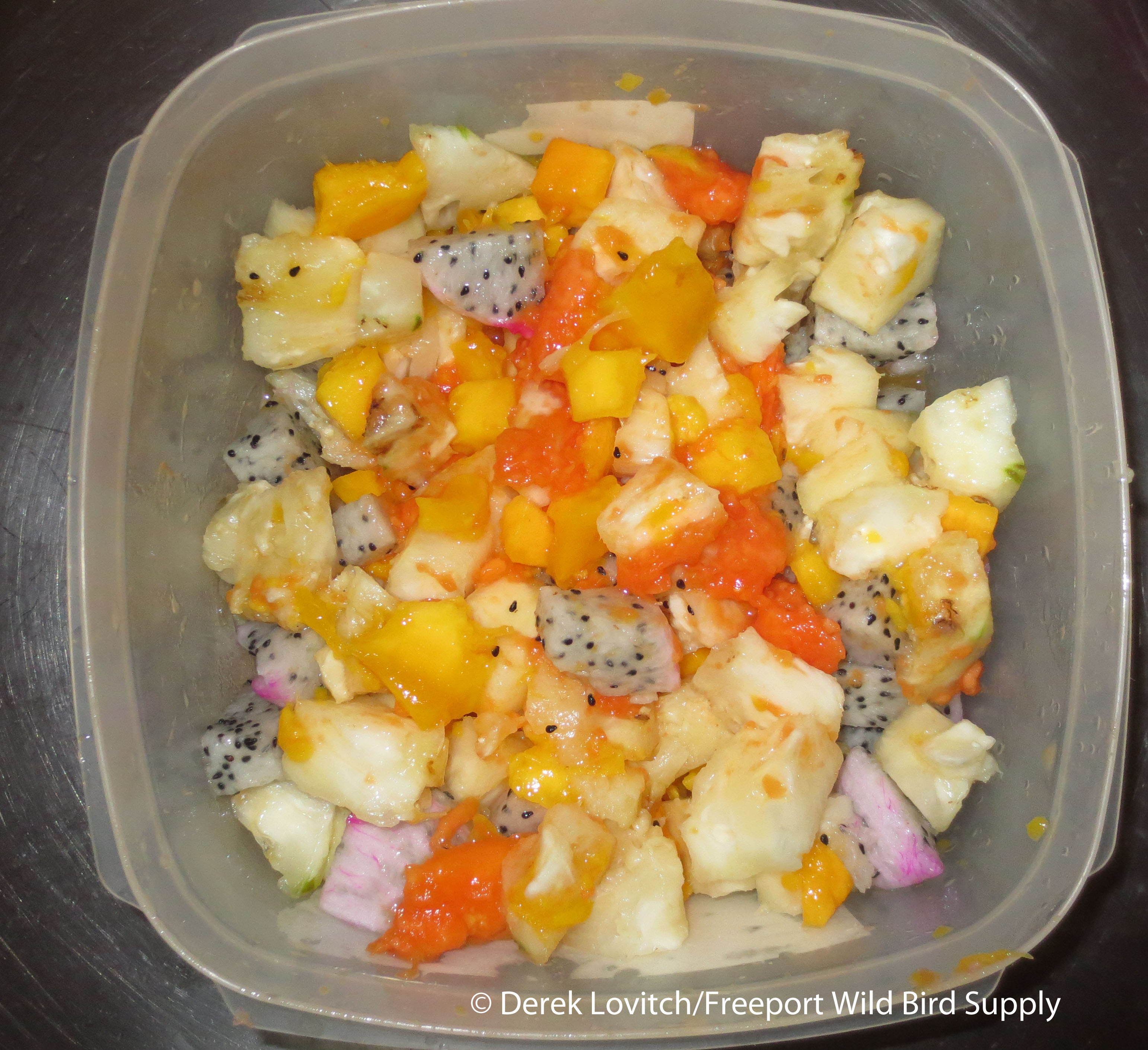Fruit salad for breakfast, foraged at a local farmers market, to fuel the birding day.