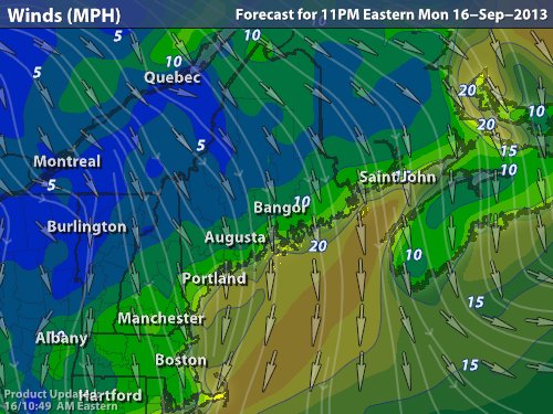 When there are this many birds in the air so close to sunrise, there are going to be a lot of birds taking part in the “morning redetermined migration” come dawn, along with crepuscular migrants that are moving in the early light. The radar provided all of the suggestions of a big flight. And, with a light northwesterly breeze, many more birds were low and in the trees than on the westerly breezes of the last few mornings. Here’s the wind map, showing that low moving off of the Maritimes, ushering in a north to northwesterly flow behind it – as I postulated on my blog yesterday.