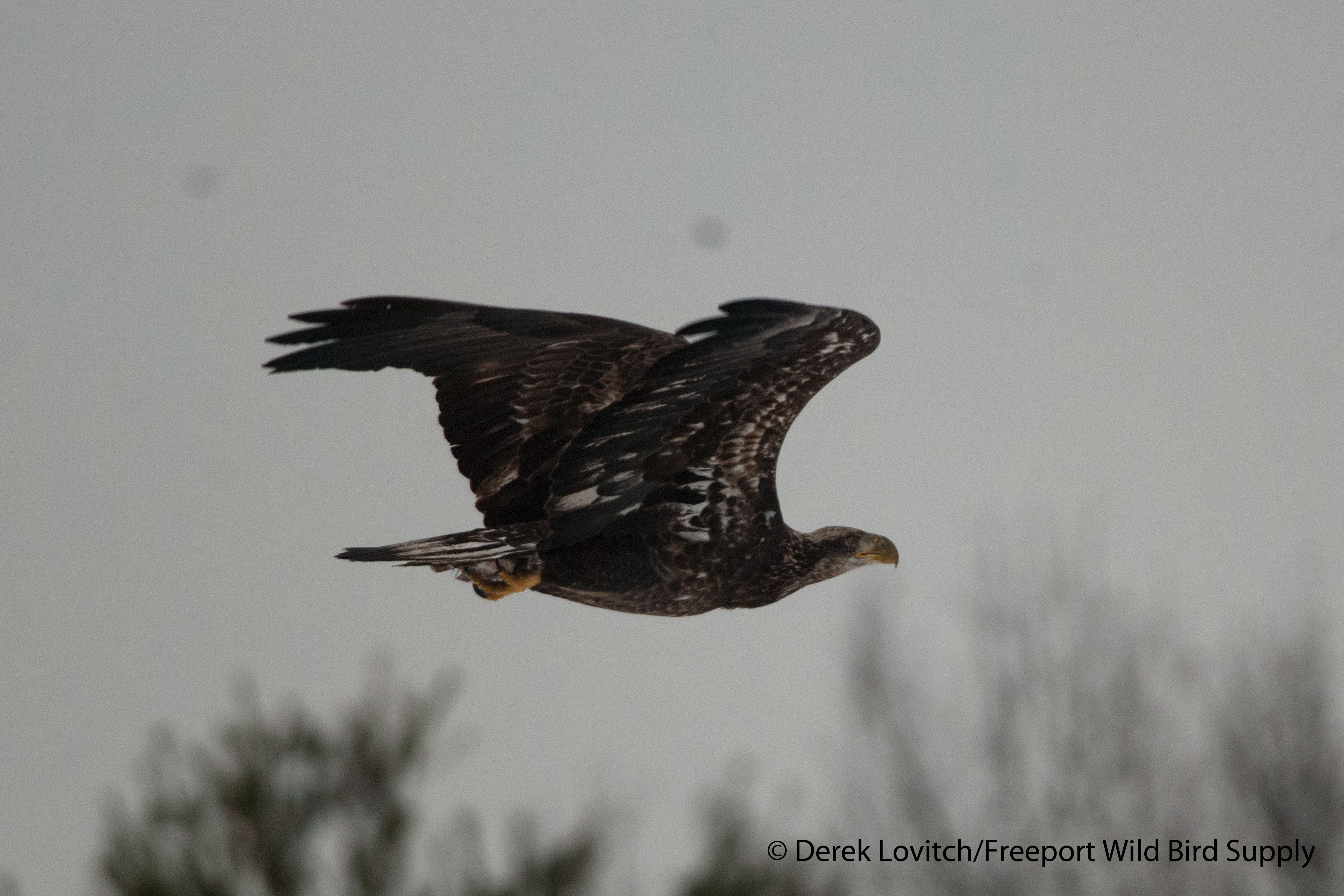 However, at least a dozen Bald Eagles of various ages were particularly active today, so I grabbed the SLR and fired away. There was this 4th-year bird: