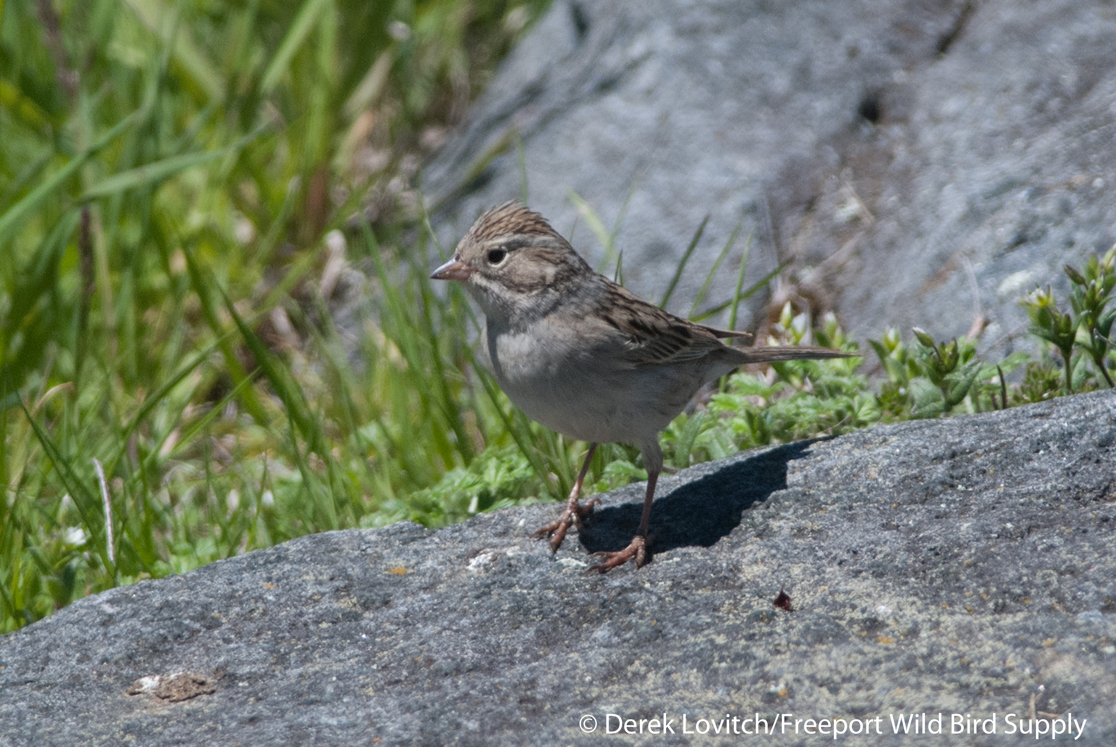 So yeah, “Maine’s International Birder of Mystery” discovered a Brewer’s Sparrow. First found at the edge of the road at its terminus at the Ice Pond, it soon made its way into a nearby yard. Dandelion seeds were its quarry.