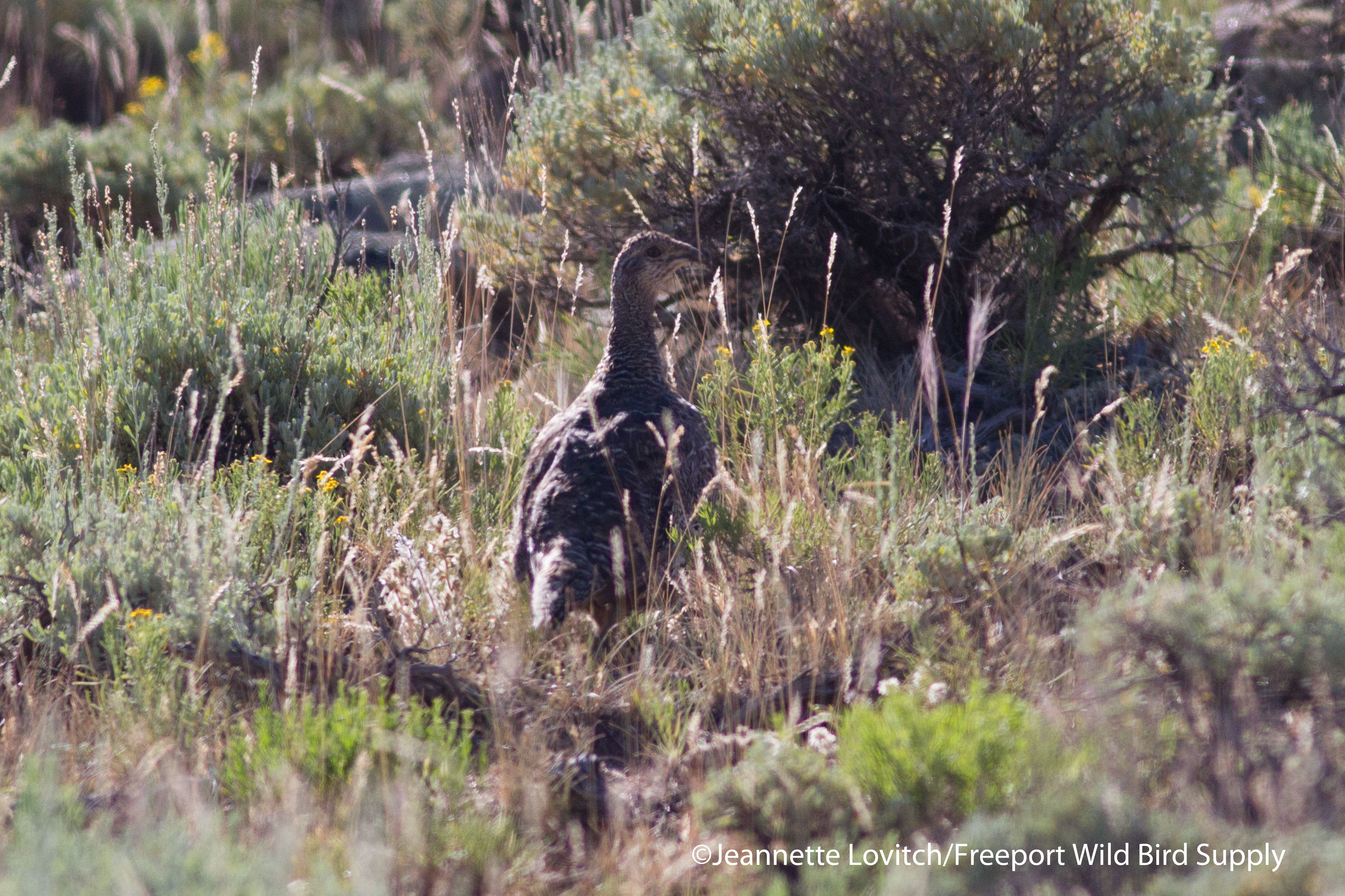 We watched her mosey up a small hillside (did she have chicks hiding nearby?), and so we retreated to some rocks and waited. She didn’t return to the grassy road edge, so we walked around a small rocky mound to get a better look. And that’s when we flushed another one!