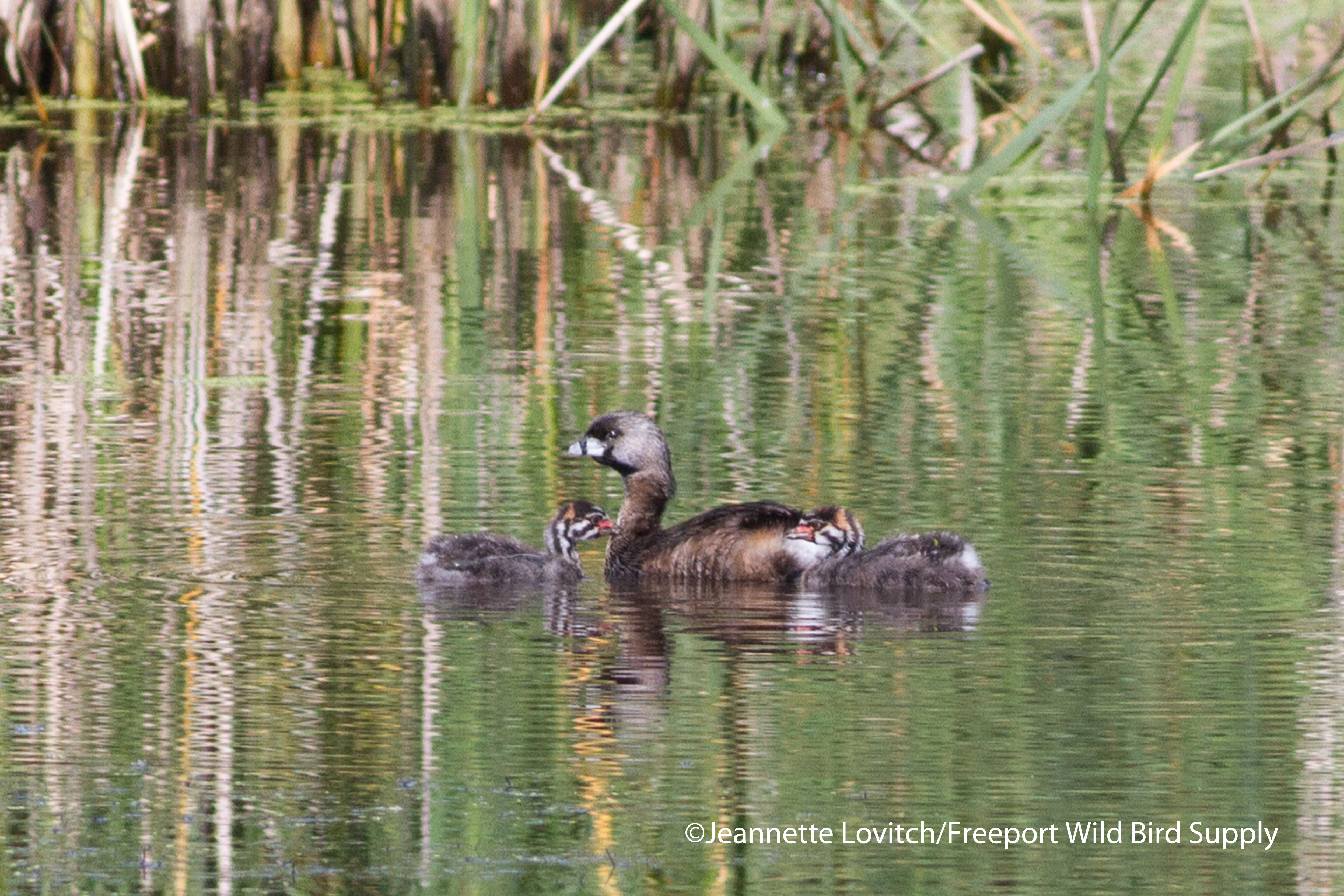 Pied-billed Grebe with chicks.