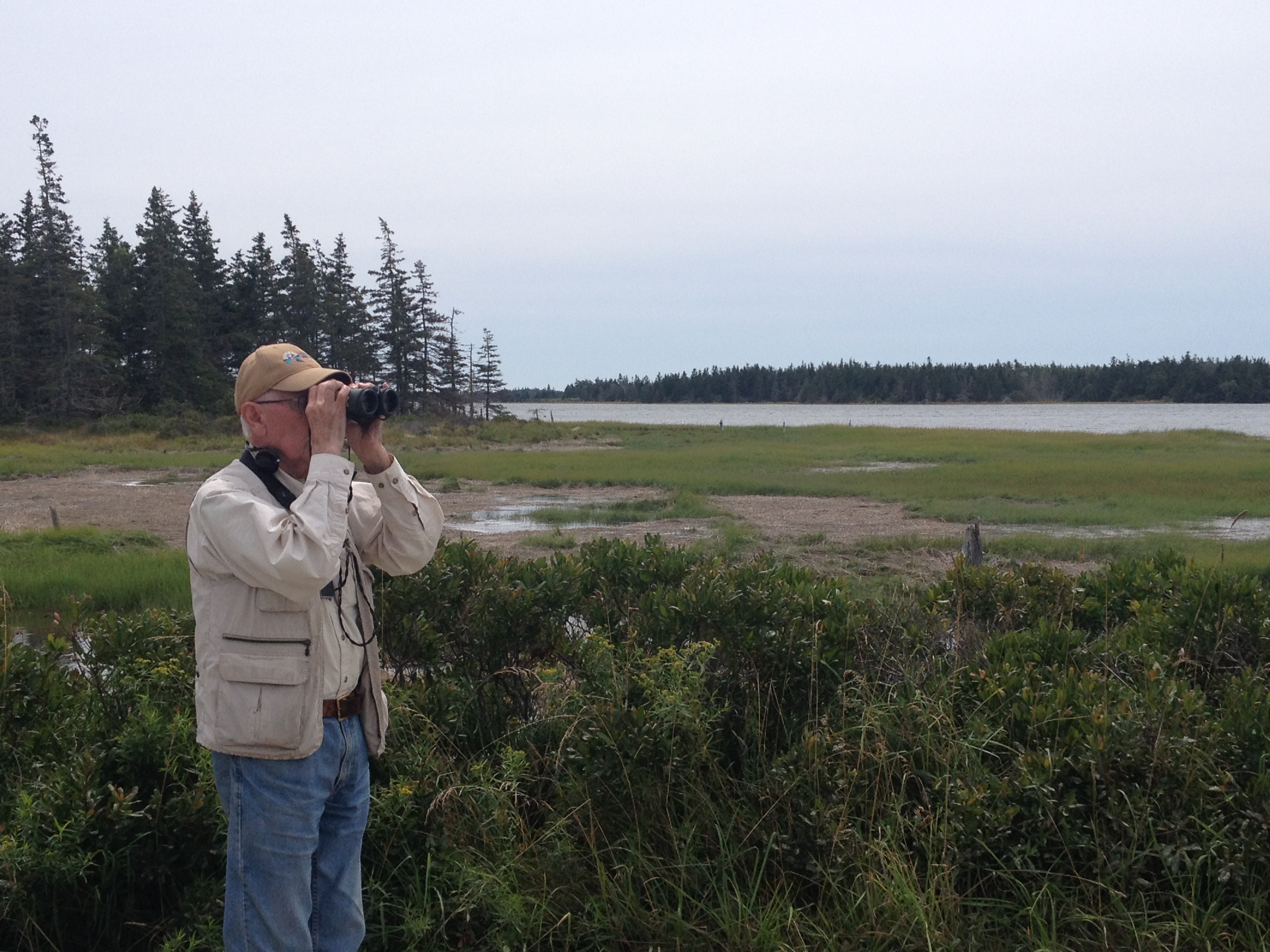 While we missed peak shorebird density at Hawk Point by perhaps as much as an hour, one of the 4 pairs of American Oystercatchers in the entire province were visible, as were plenty of shorebirds, with a combined guesstimate of several thousand Short-billed Dowitchers, Black-bellied Plovers, Semipalmated Sandpipers and Plovers, with smaller numbers of Lesser and Greater Yellowlegs, Least and White-rumped Sandpipers, along with handfuls of Ruddy Turnstones, “Eastern” Willets, and Sanderlings. Only one Whimbrel, however, and no Hudsonian Godwits. I was still impressed – especially if we had missed the peak – and thoroughly enjoyed the waves of shorebirds streaming overhead and out of the bays, heading towards their high-tide roosts on the sandy barrier island of Cape Sable.