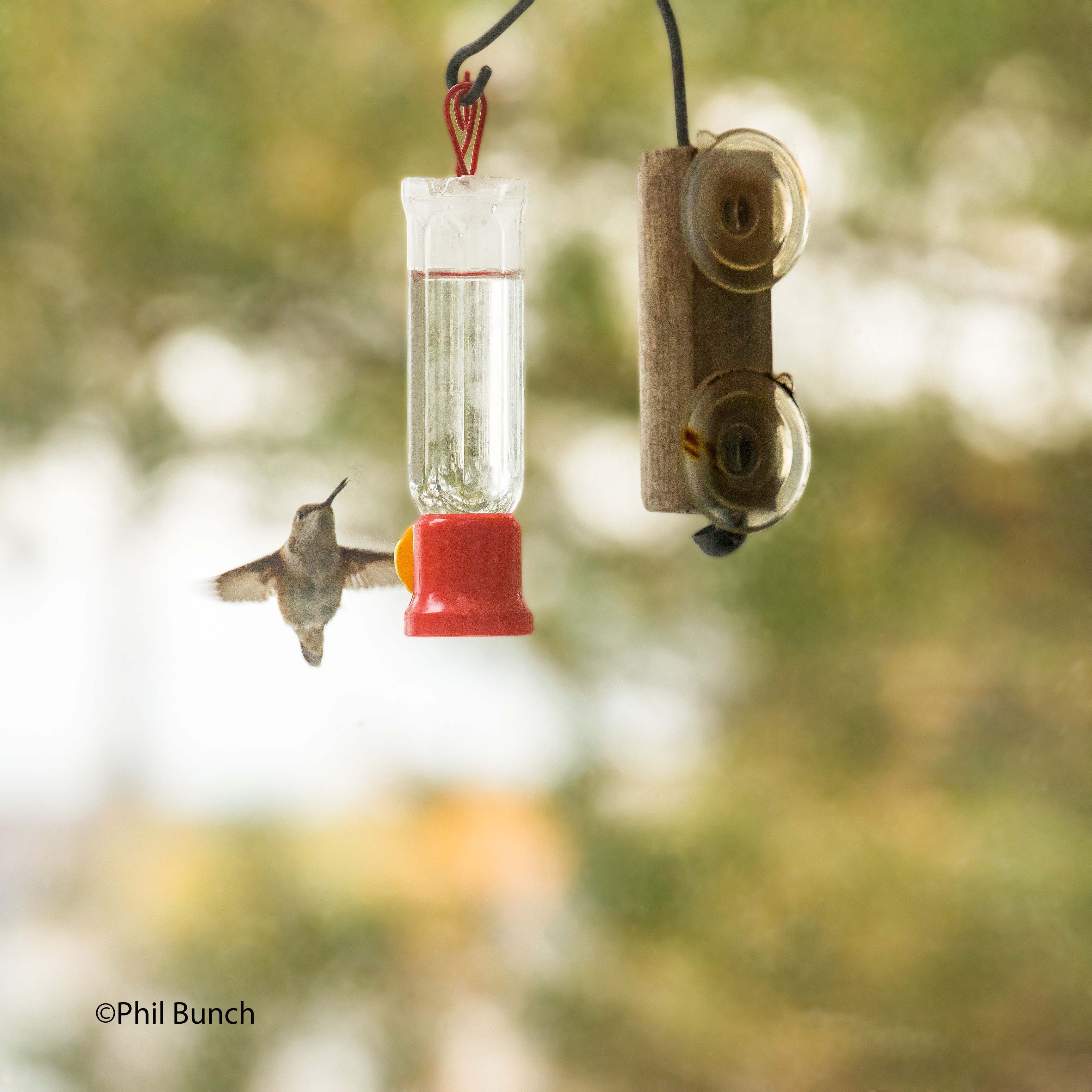 1. First sighted on Friday October 16 at 8AM feeding amongst the flowering Agastache plants (common name: Hyssop) on our deck. As the bird darted rapidly back and forth, I caught a glimpse of its back and saw patches of iridescent green. The bird soon discovered the tube feeders hanging on our sliding glass doors and proceeded to feed on the hummingbird nectar vigorously throughout the day.