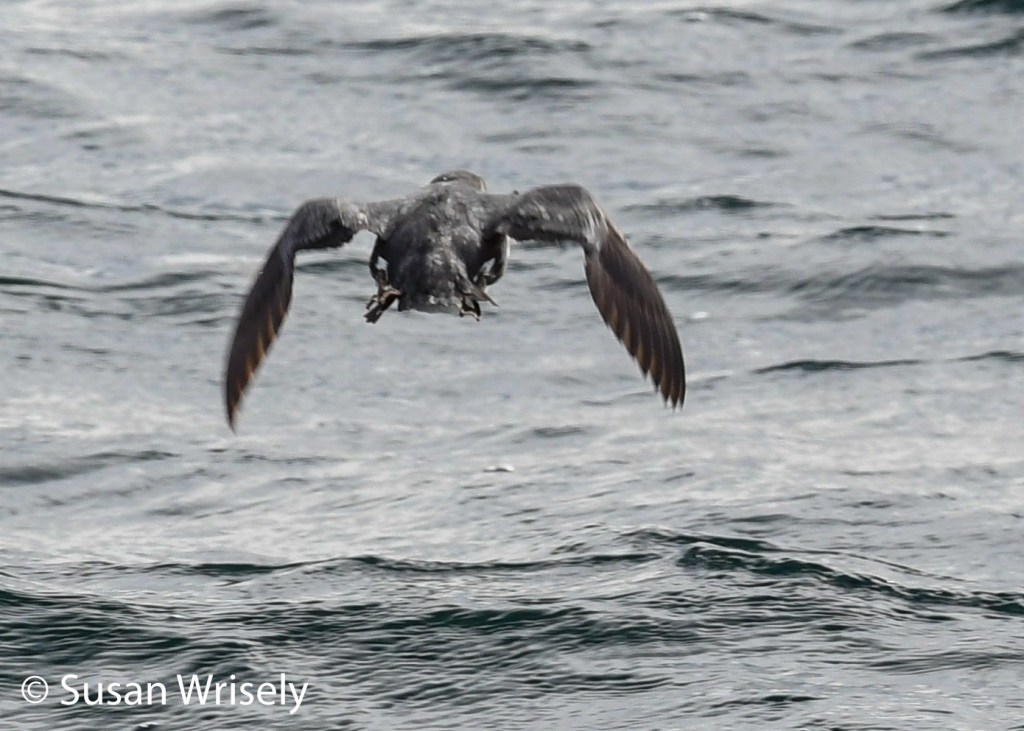 Cap’n Fish’s Dominique Caverly joined me in narrating the tour, adding additional natural history information. Captain Tabor did an exceptional job keeping the boat as comfortable as possible, finding some interesting underwater topography, trying to position the boat to view birds in the best light, and catching up with those two jaegers! Ian Carlsen was our chummer extraordinaire, getting fulmars and Great Shearwaters within a few yards of the boat – while simultaneously keeping track of our eBird transects.