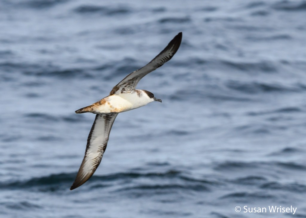 And finally, passerines are always exciting when encountered offshore, and always a challenge. I was a little surprised we didn’t encounter more as there had been a massive flight overnight, but the lack of a westerly component kept those birds from drifting offshore. In fact, both birds we saw were heading southwest, likely “onward” migration rather than compensating for overnight drift. One was relegated to “passerine species,” but photographs confirmed the other as a Yellow-rumped Warbler.
