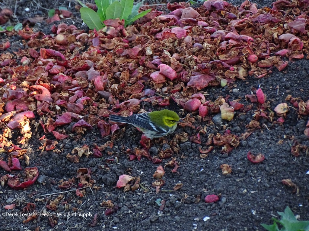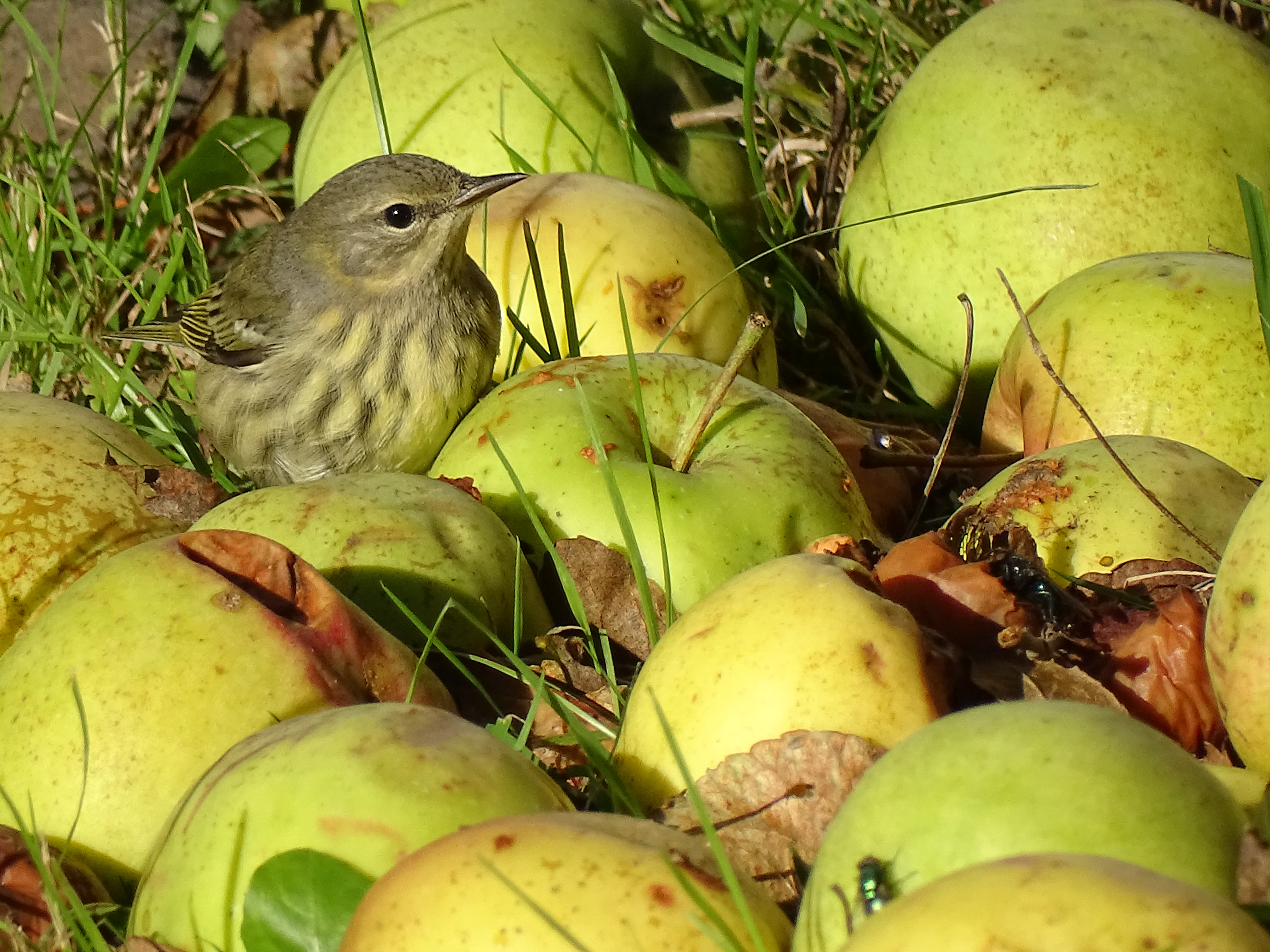 This Cape May Warbler was one of many birds that escaped the strong winds by finding large flies eating rotting apples that littered the ground all over the island.
