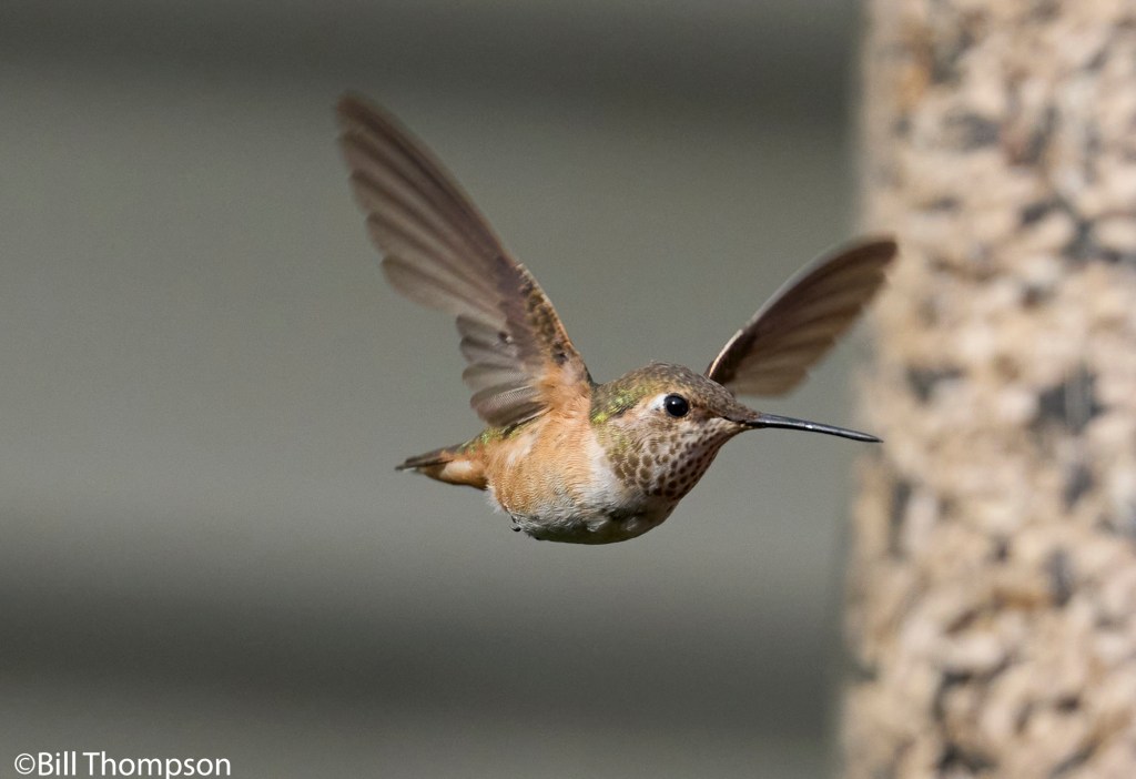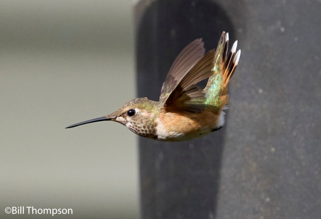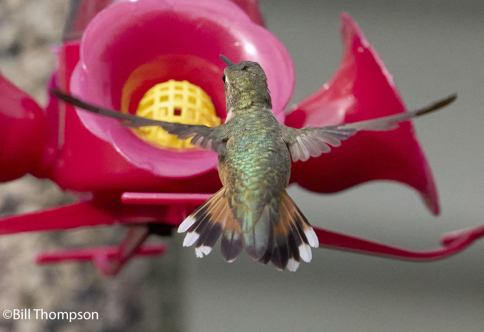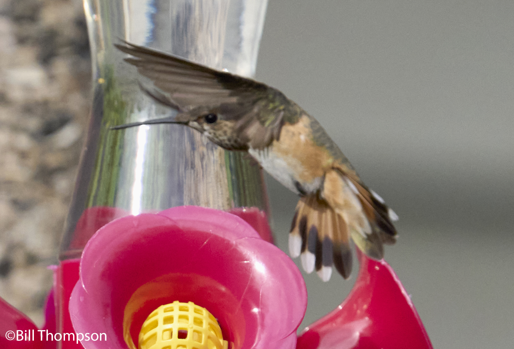 Thanks to Sue’s diligent care, and the deployment of a heated hummingbird feeder – the same one that sustained the Broad-tailed as it was donated to the cause by its host! – the Rufous was afforded every opportunity to fuel up, continue to molt and build strength, and depart when she was ready.