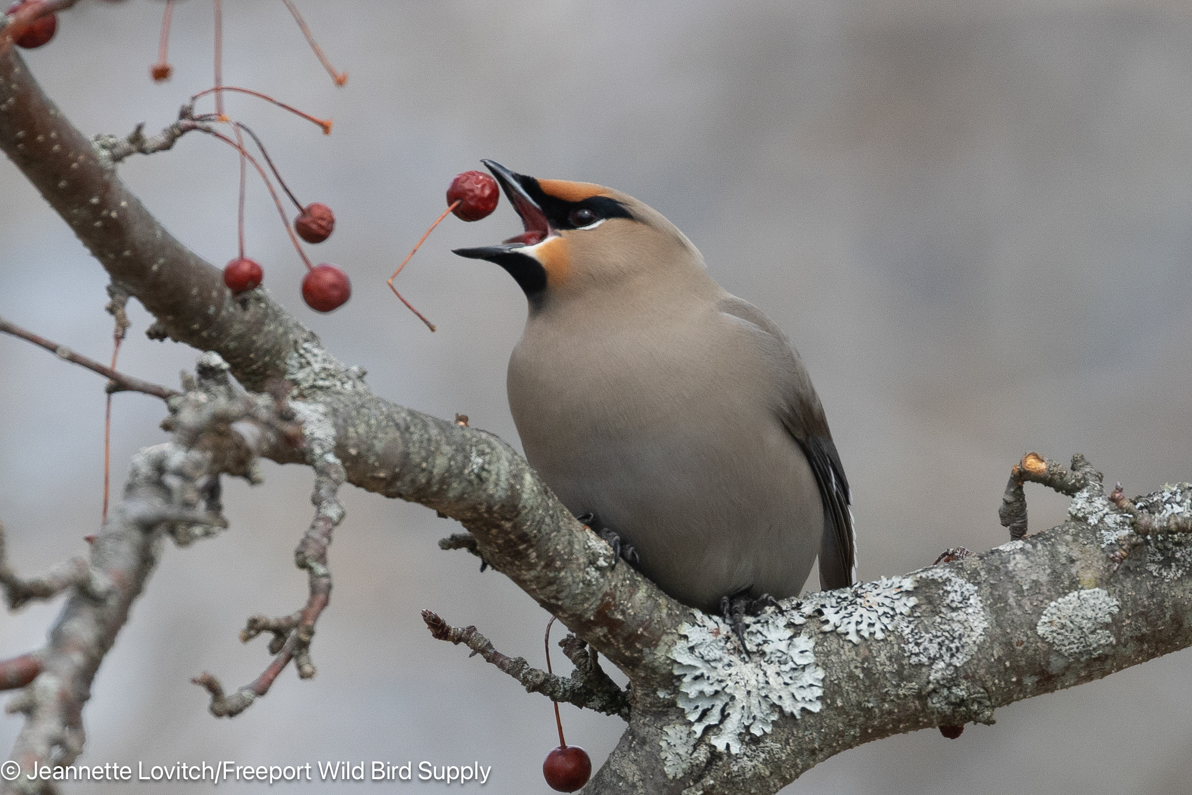 Jeannette and I had a great weekend of Bohemian Waxwing quality time, including this photo session at University of Maine – Orono’s Littlefield Garden on 4/6.