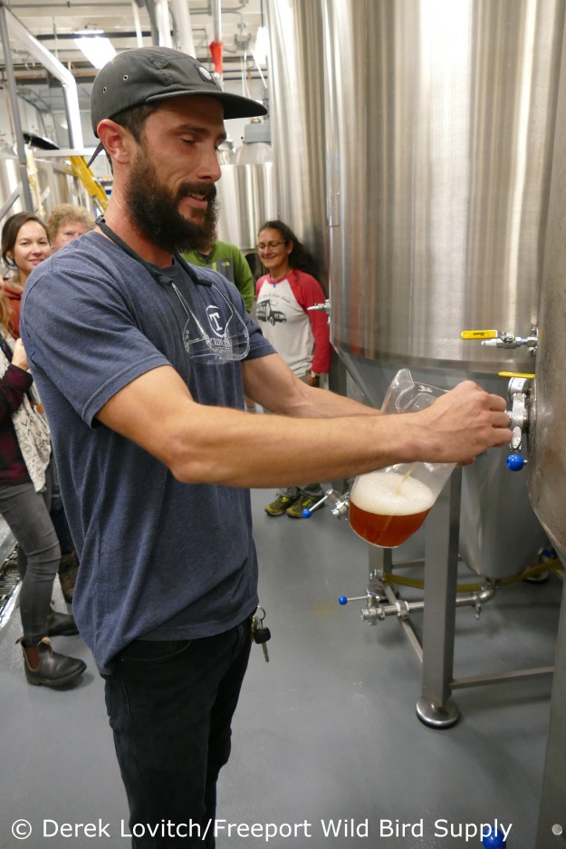 After some productive and instructive birding, we headed back into town to visit Belleflower Brewing, one of my favorite Maine breweries. Keeping with the bird theme for a little longer, we began with their pale ale, Magpie, with its great citrus and resinous balance, followed by the more grapefruity Finch and Thistle. Belleflower treated us to a third sample, of our choice, and we covered a nice range of their offerings from a Vienna lager to a double-dry-hopped double IPA to savor as we discussed some beer history and mythology.