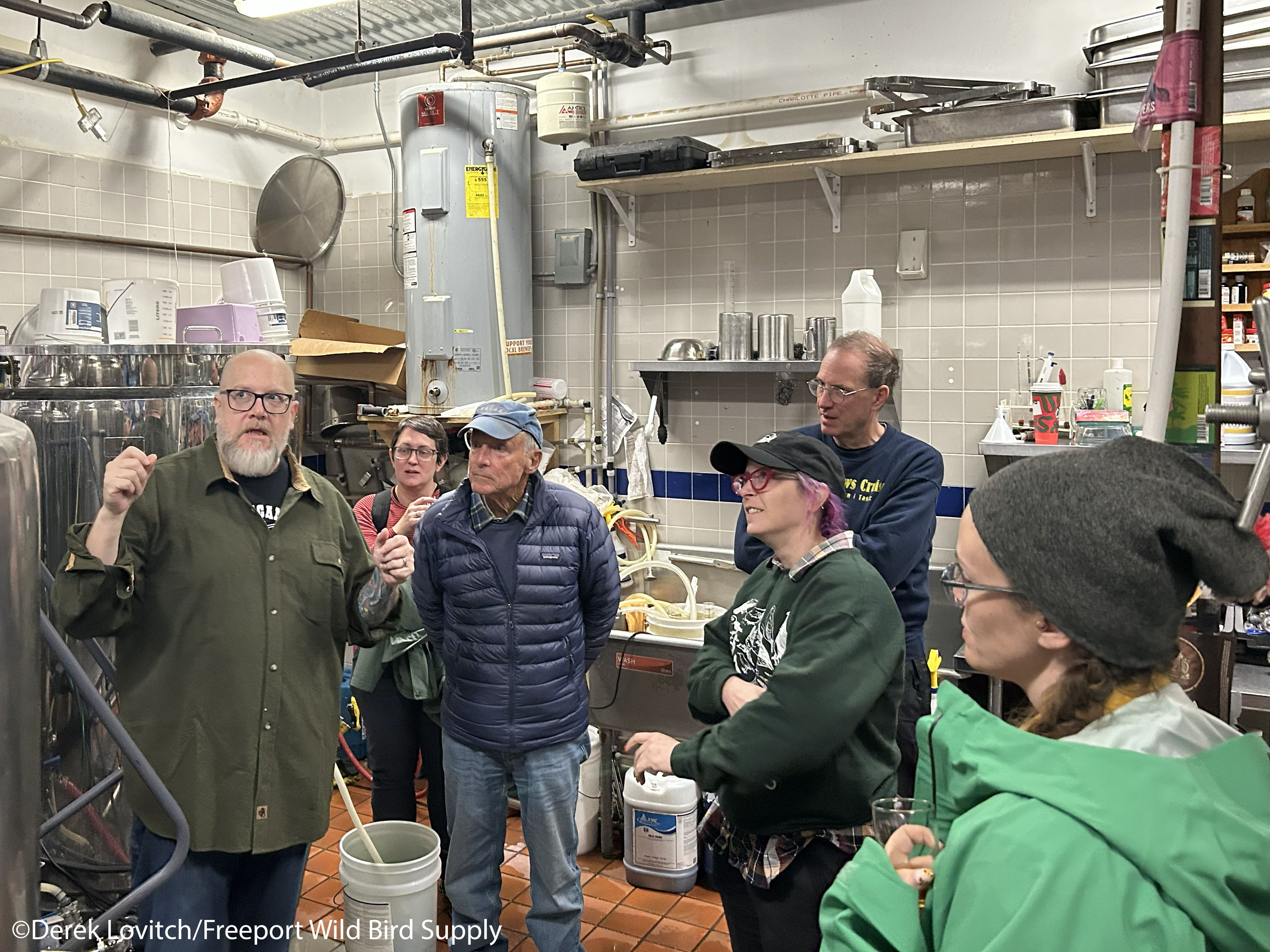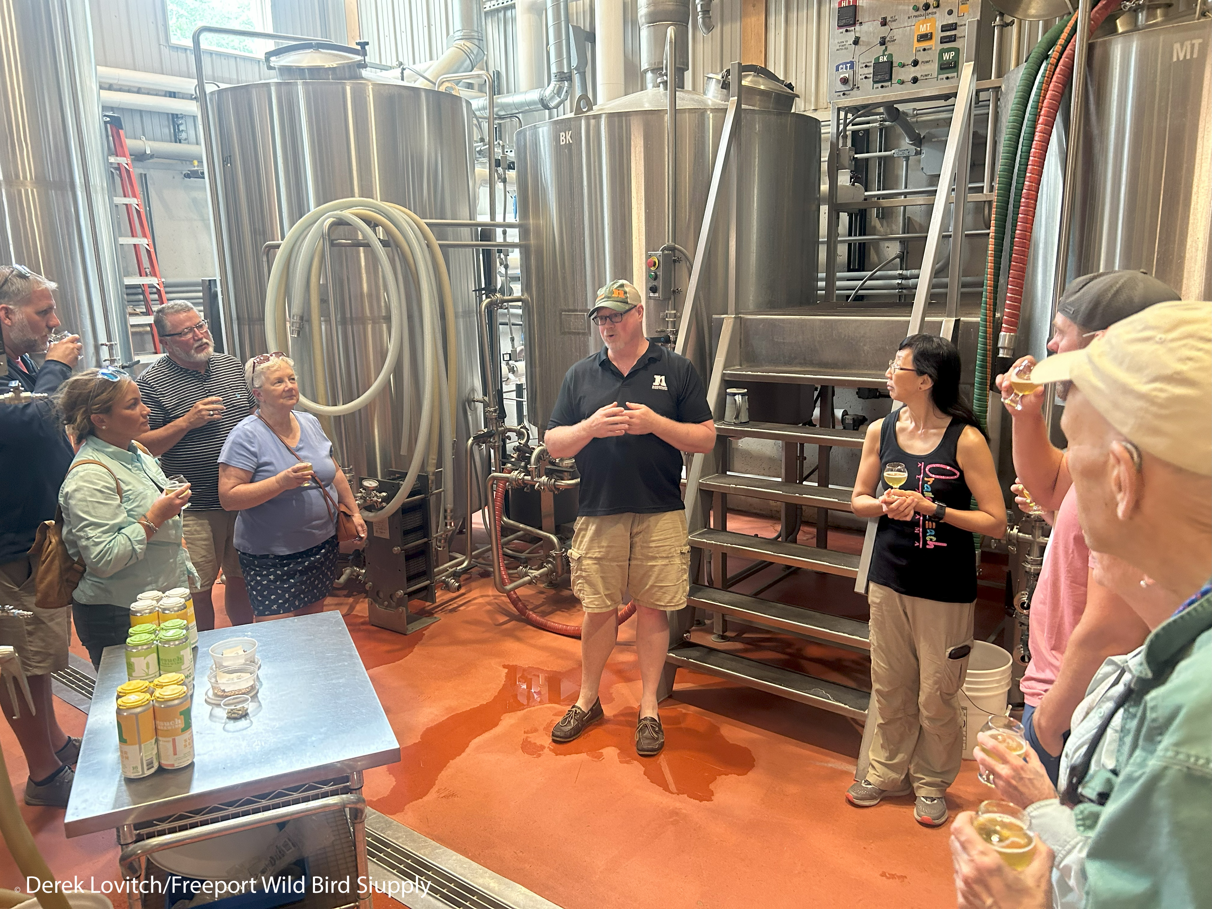 Woodland Farms is also becoming known for their non-alcoholic beers, a rapidly growing segment of the beer economy. Out back, we learned about the differences in making non-alcoholic beer that tastes good verses beer with alcohol, and especially, mass-produced NA beer that usually tastes like, well, not much. To demonstrate what NA beer means in 2025, we were treated to two bonus samples: the NA Dogwalker with an abundance of sticky, piney-resinous hops, and their NA Festbier, an easy-drinking seasonal malt-forward Oktober-fest style.