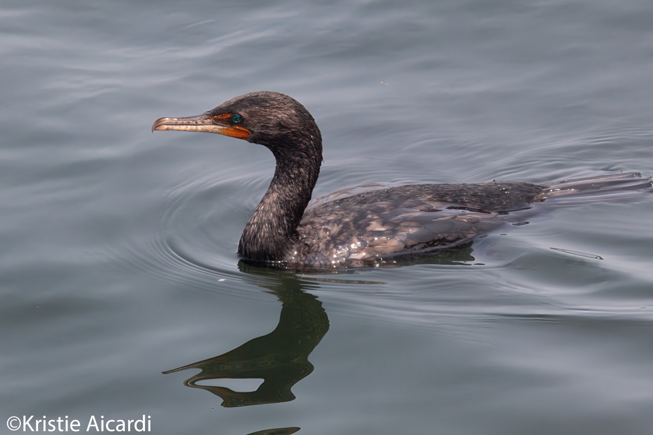 In the photo above, a Black-bellied Plover, Whimbrel, and Willet are in one field of view for comparative study, while I always insist on taking a moment to gawk at the eye of a Double-crested Cormorant.