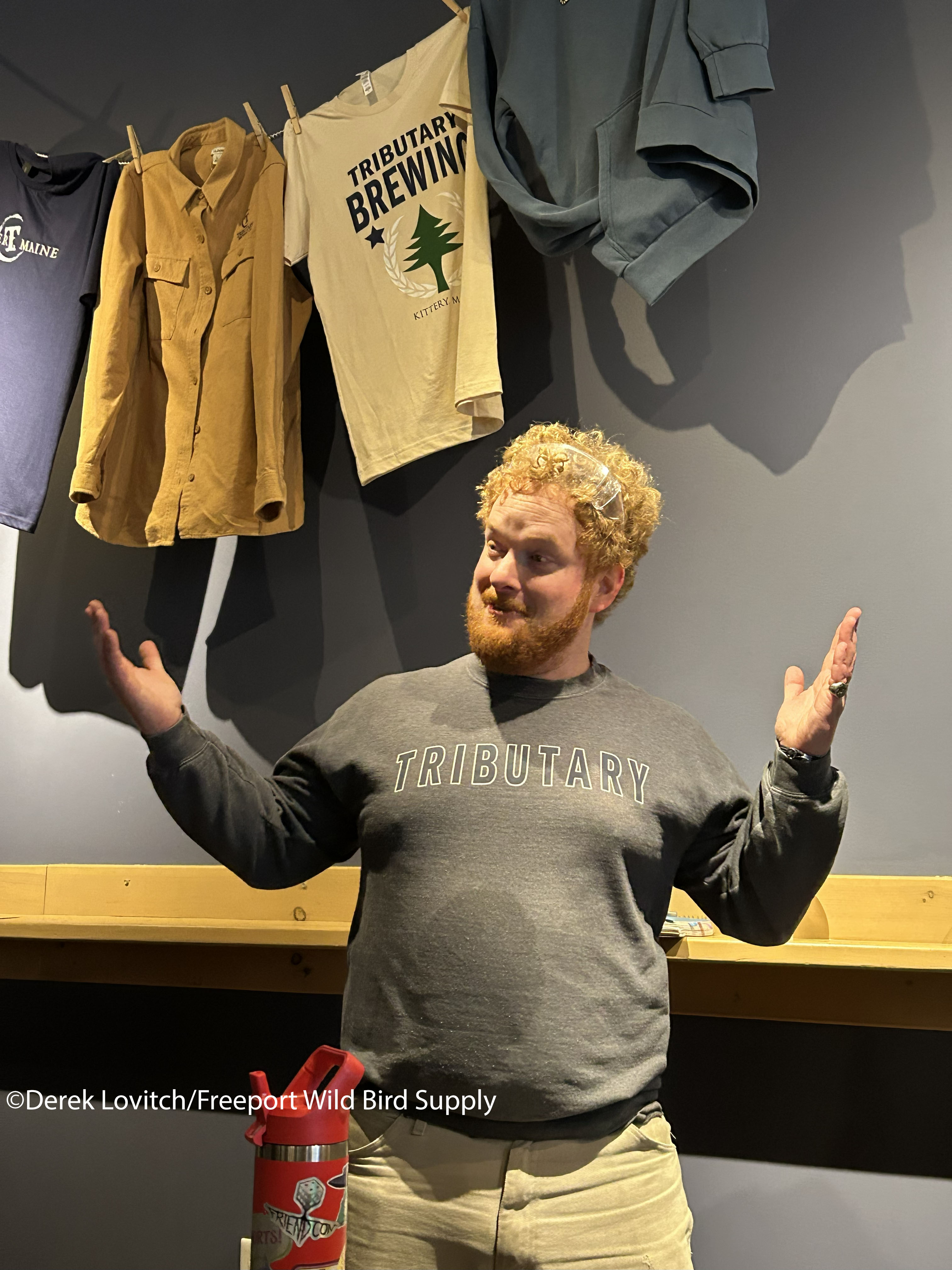 Our next destination was the latest tasting room for Westbrook-based Mast Landing, a short distance away on Cottage Street in South Portland. We continued to cover the basics of beer varieties here, starting with the clean and crushable Champ Lager. No visit to Mast Landing – especially a first visit for most of our crew today – is complete without trying their famous flagship Gunner’s Daughter peanut butter milk stout, and enjoying it on Nitro is always a special treat. Like a creamy liquid peanut butter cup (sans the allergens), Gunner’s Daughter deserves its accolades. Once again, our last sample was a personal choice, and since Mast Landing has something for everyone and I believe there were over 10 beers chosen among the 13 people (unfortunately, everyone but Eric, our trusty brewery guide and driver). Since it’s a Birds on Tap – Roadtrip, I for one had no choice but to go with a bird named beer. There are several here, but today I tried the 2025 incarnation of Song of the Swallow, which was laden with 5 varieties of hops for a really smooth and juicy final toast.