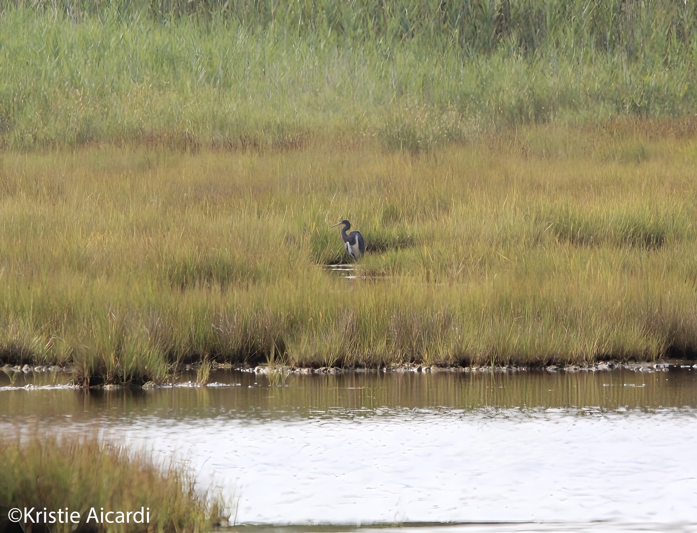 Beginning at the “Pelreco Marsh” high water levels limited our shorebird numbers a bit, but we were introduced to some of the basics of shorebird identification thanks to a flock of Short-billed Dowitchers and scattered Least Sandpipers. We spied a Saltmarsh Sparrow and talked about its fascinating ecology and peril, and were surprised by the arrival of a rare Tricolored Heron!