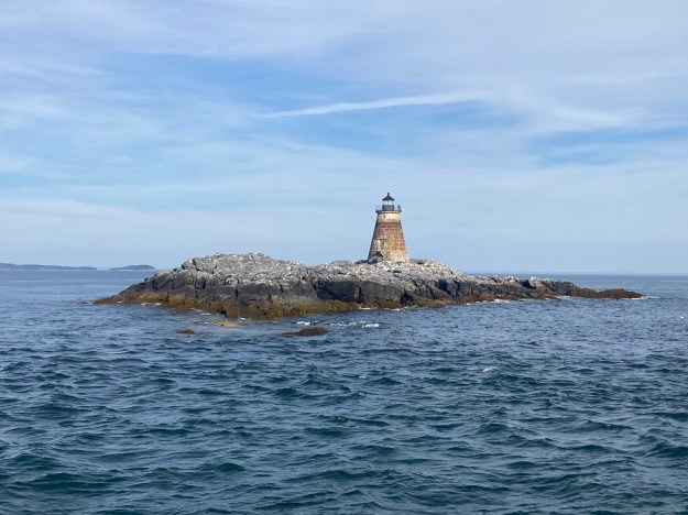 Motoring out of Boothbay Harbor and across Muscongus Bay, we familiarized ourselves with the common denizens of Maine’s summer coast, such as Common Eiders, Black Guillemots, Common Terns, and Ospreys. Kelsey pointed out landmarks and gave a little history of the area.