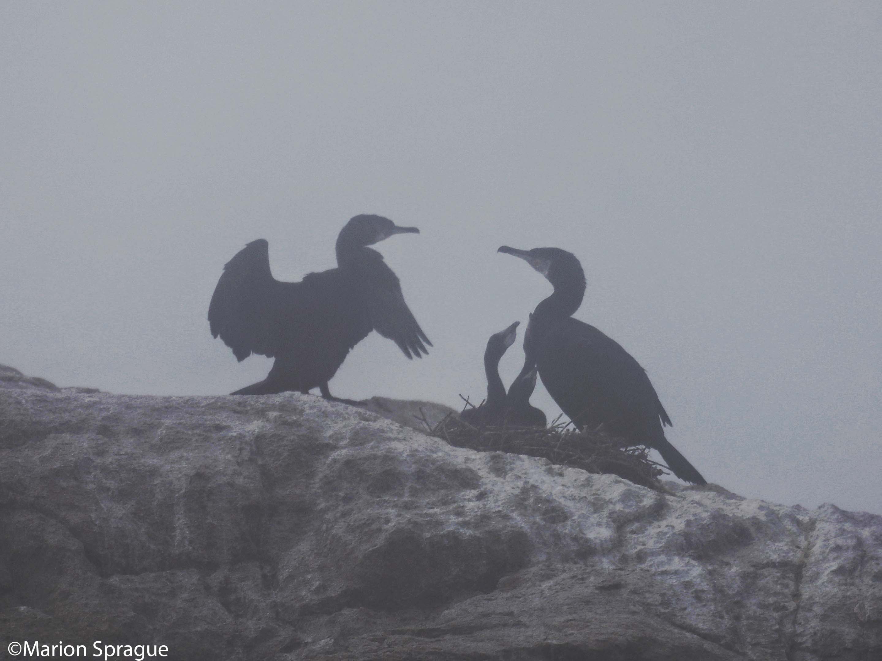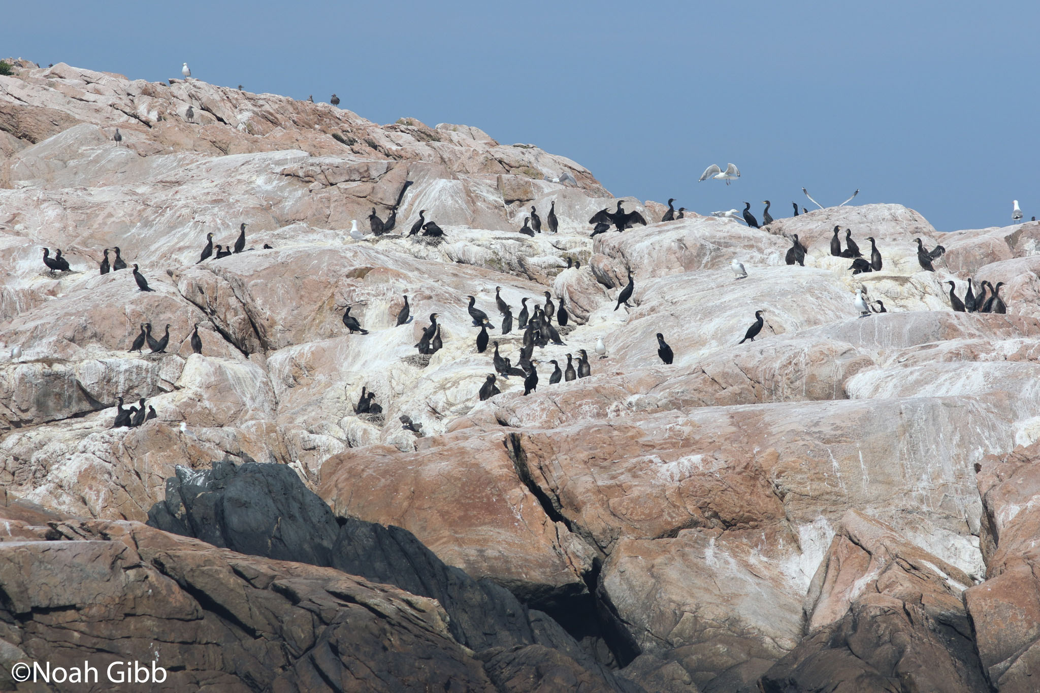 We motored around the south end, where the swell was just enough to prevent us from getting too close to the Great Cormorant colony – Maine’s last. But the nests brimming with growing chicks was still thoroughly enjoyed.