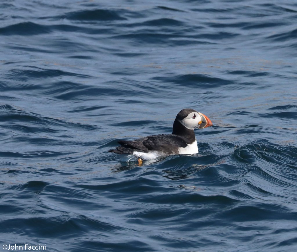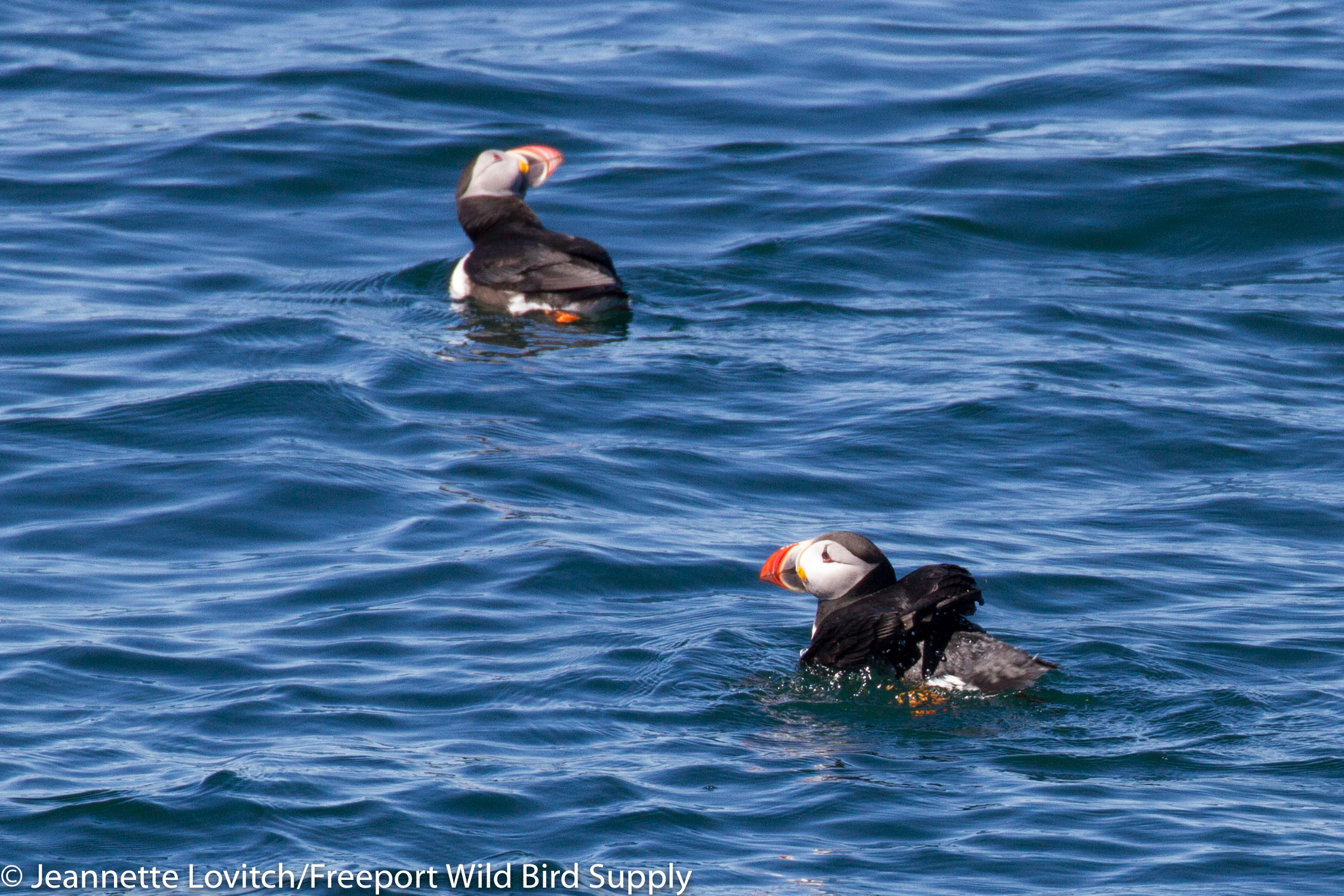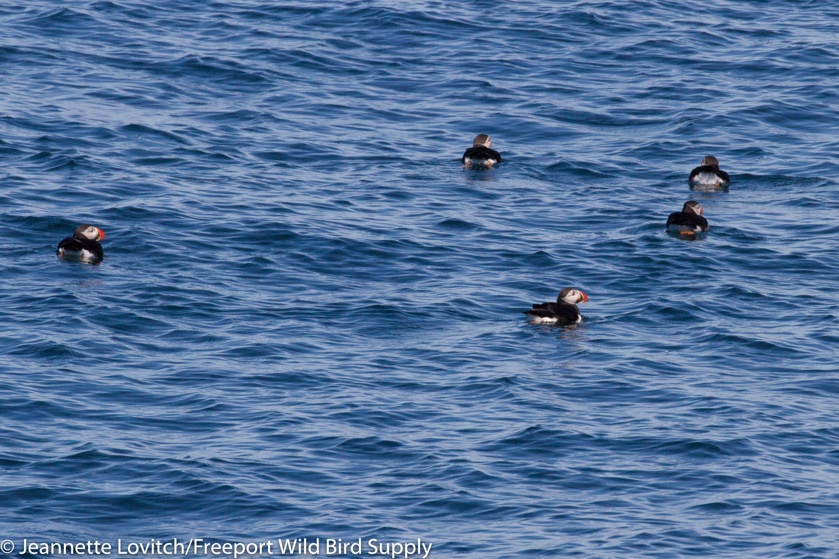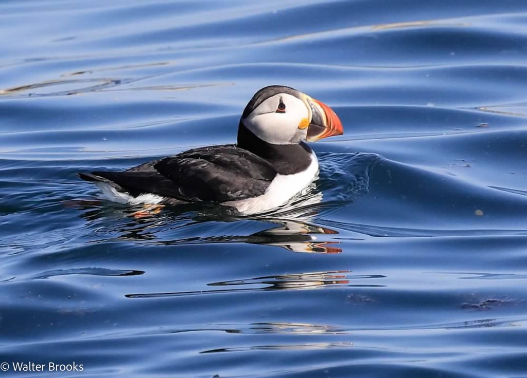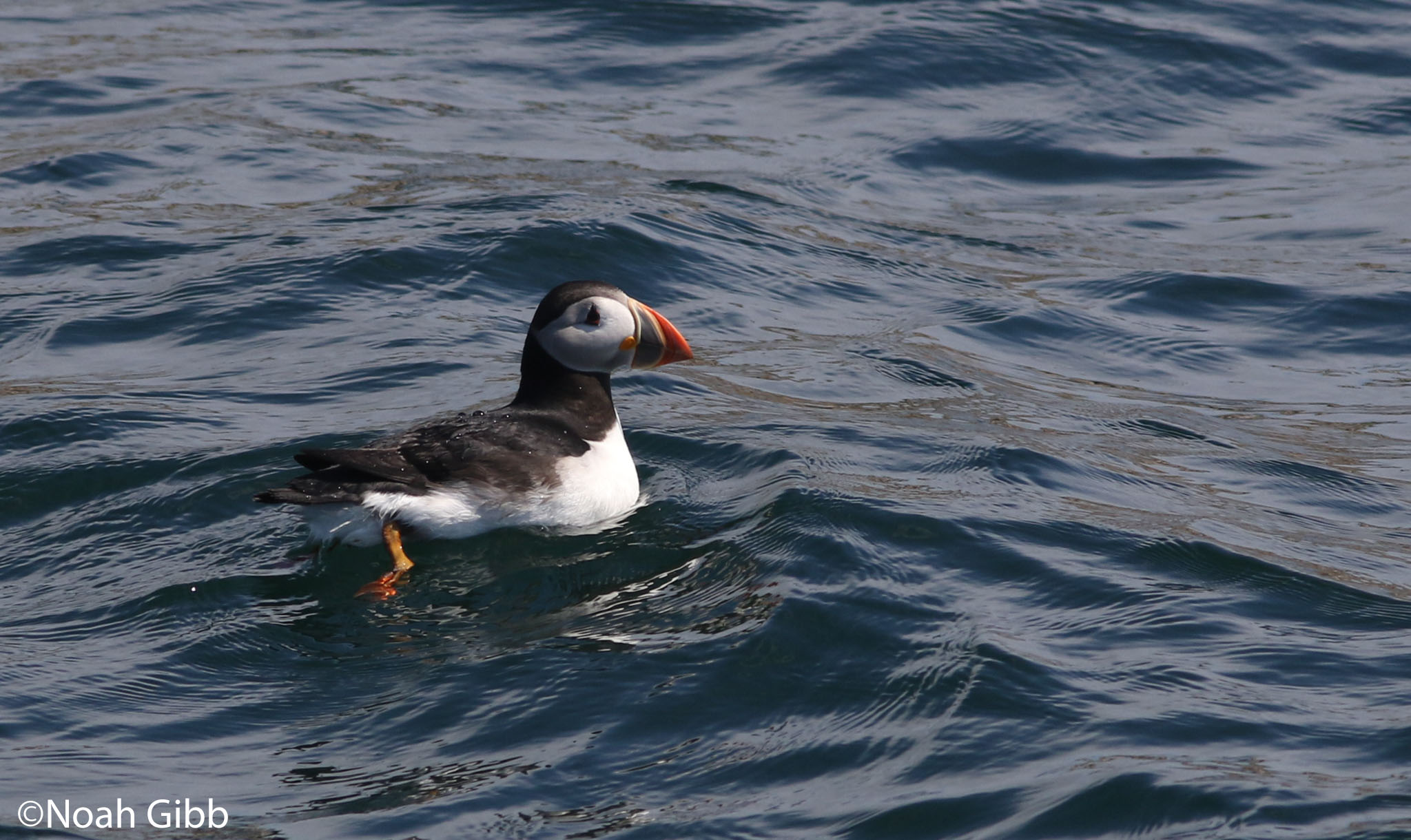 The amazingly calm conditions and unusually warmth worked in our favor, as many of the island’s Atlantic Puffins and Black Guillemots were in the water instead of loafing on the rocks, allowing us to drift closely to many of them. One of the island’s ephemeral Razorbills was spotted near the boat, giving us long and good looks as well.