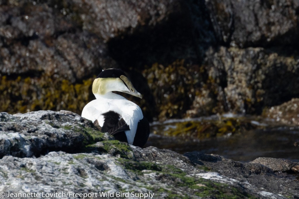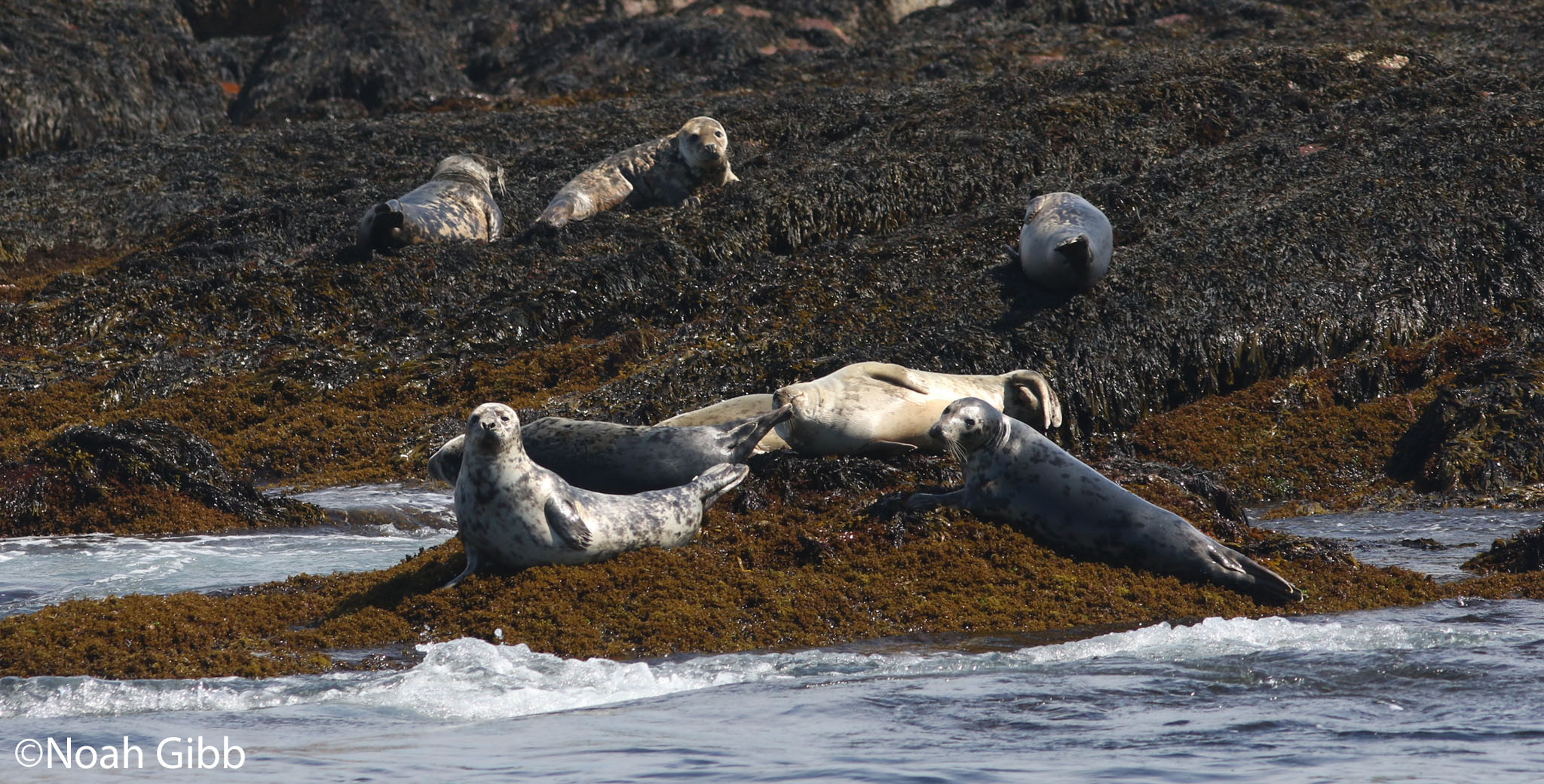 We skimmed the mouth of BlueHillBay, checking our Harbor Seals basking on ledges exposed by the low tide, and happening upon a few large rafts of molting Common Eiders.