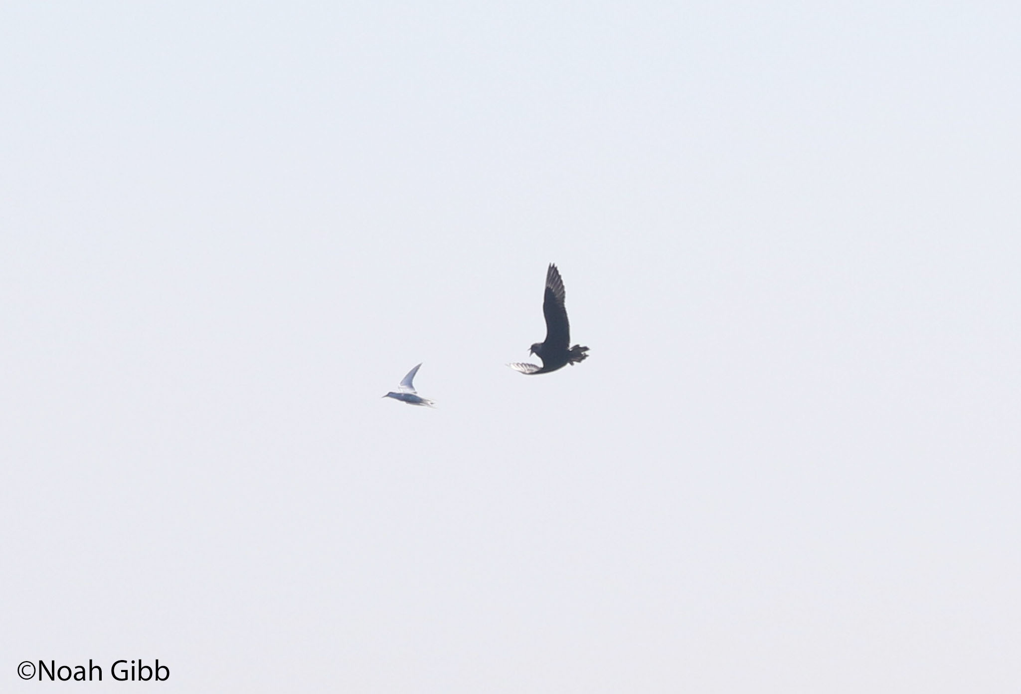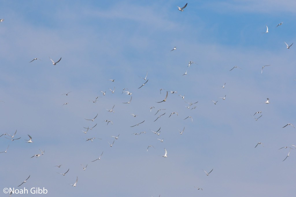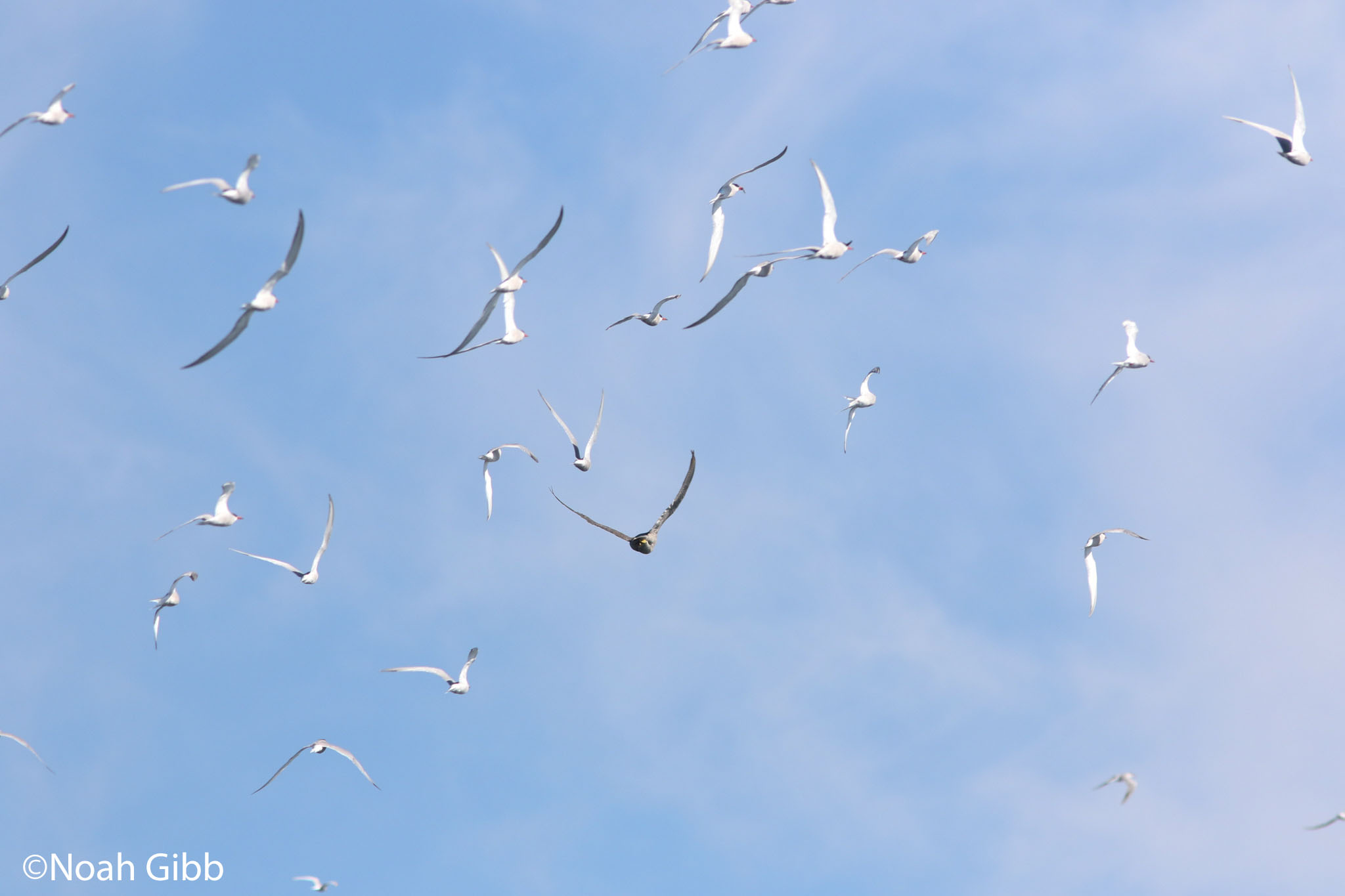 It surprised the terns by coming up and over the backside of the island, scattering the entire colony. Upon identifying the intruder, all of the adults made a beeline and began diving, mobbing, and otherwise trying to drive the predator away. Watching one of the world’s greatest – and fastest – predators in action was a real special treat, but we were also not upset that it came away empty; we were rooting for the terns.