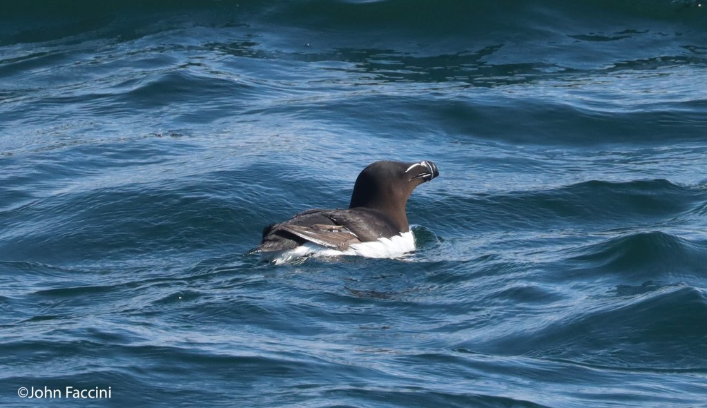 Satisfied with our views of the island’s denizens, we turned offshore and followed the Arctic Terns to deeper waters. It wasn’t too long before we started seeing scattered Wilson’s Storm-Petrels, but we slammed on the breaks when I spotted a Common Murre on the water up ahead. Captain Steve was able to circle the bird for all to see and photograph before we continued on; the murre was most obliging.  It also made for the hoped-for 4-alcid day, which is always a challenge this far south.