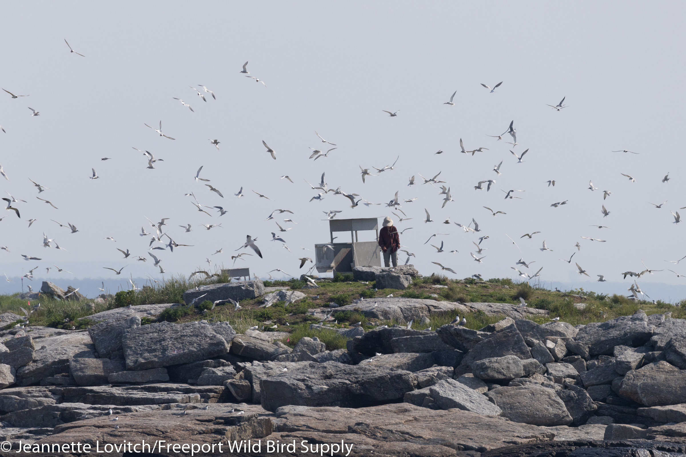 But we still had a time limit for our charter, so we decided to spend our last moments enjoying the action at the tern colony. That’s when a Peregrine Falcon arrived.  While this is a most unwelcome guest at a seabird colony and we were conflicted about seeing it, it was also impossible not to sit back and watch the show.