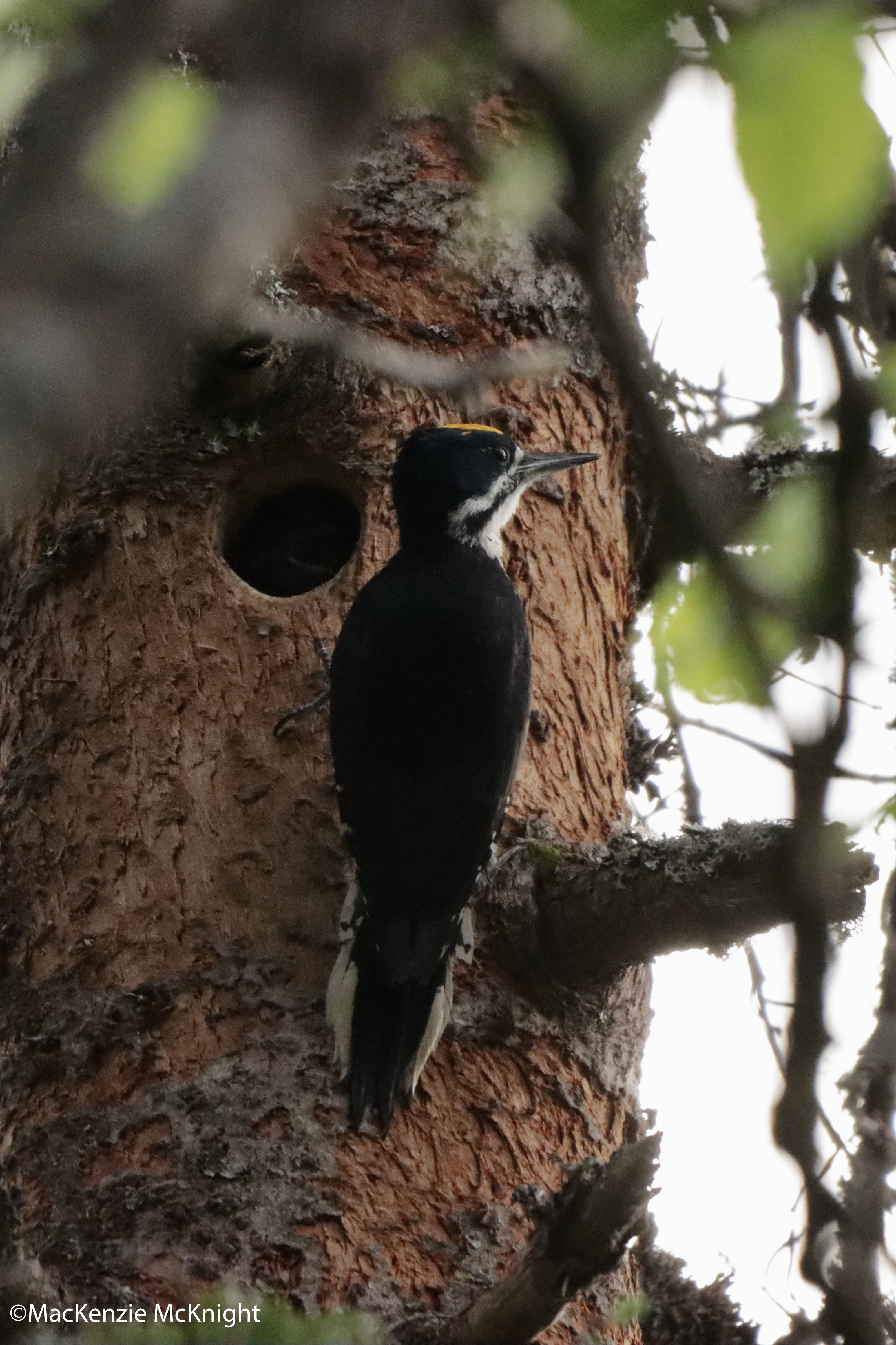 On a private tour two weeks ago, I found a Black-backed Woodpecker nest. At the time, the adults were feeding young that I could not yet hear or see. I hoped they would still be in the cavity by now, and it didn’t take long for us to know they were – we heard the begging nestlings from a good 100 feet away. I found a path of least resistance to the nest hole, and we took turns rotating in small groups to watch the adults make repeated feeding visits. Everyone was so respectful of the birds – especially the adult male – who didn’t seem too pleased with our presence. After one feeding visit per group, we backed off, gave the birds a break to feed, and then visited with the next group. While the sun was now setting fast and the photography was challenging, it was truly a special experience with such a charismatic and sought-after species.