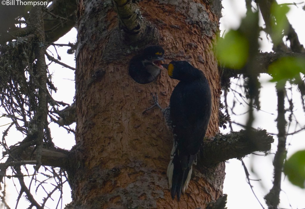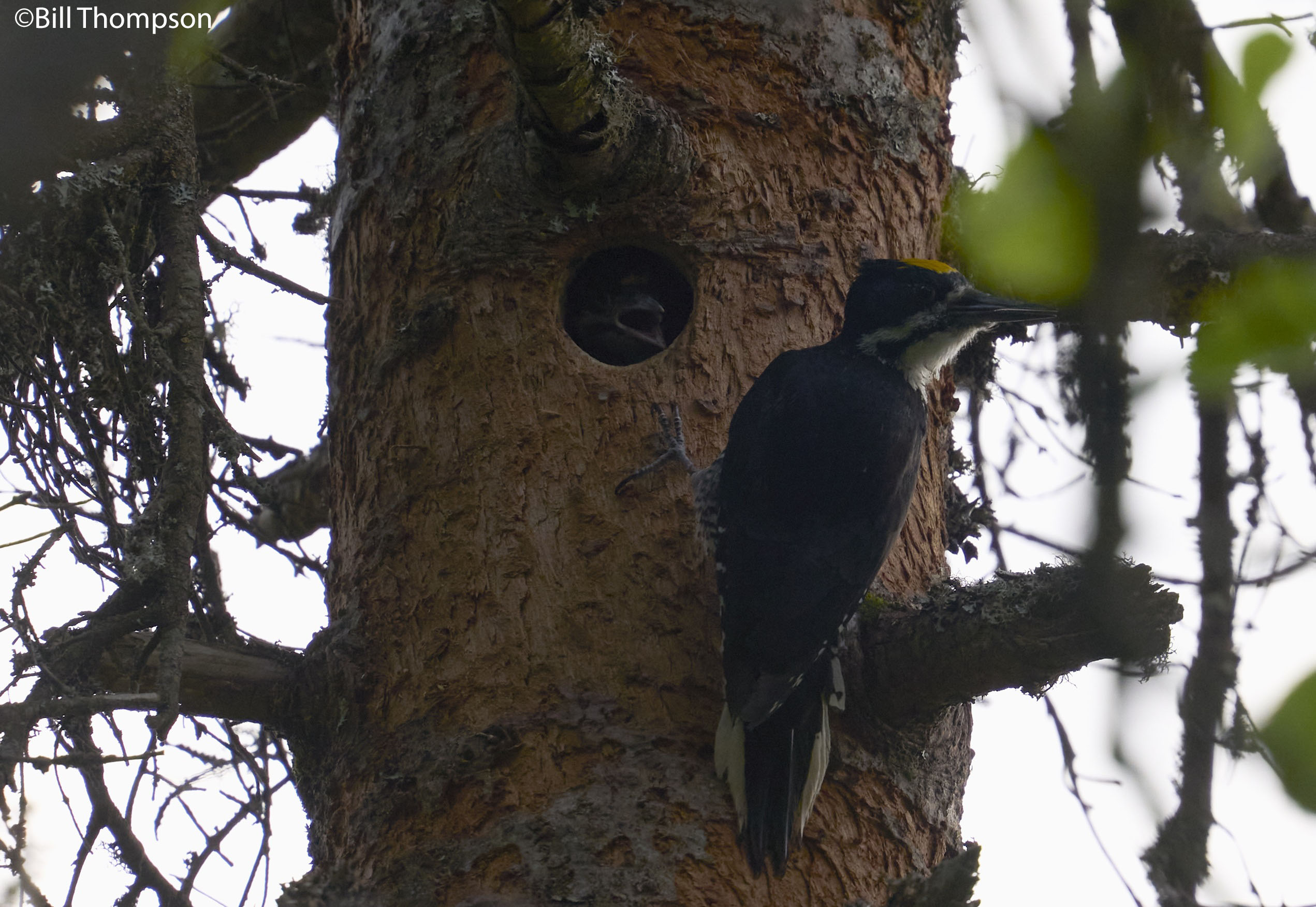 A highlight of our Bicknell’s Thrushes of New Hampshire Weekend was this Black-backed Woodpecker nest that I found on a private tour two weeks ago. By last weekend, the nestling(s?) were getting close to fledging. Thanks to Bill Thompson for the use of his photo as my camera had little interest in performing well in the low light!