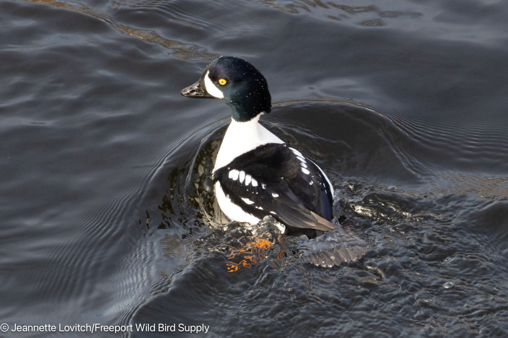 This drake Barrow’s Goldeneye was one of the foursome currently in the Androscoggin River between Auburn and Lewiston, most often in view from the Bernard Lown Peace Bridge. Jeannette paid them a visit on the 6th, where she found this one male just below the bridge.