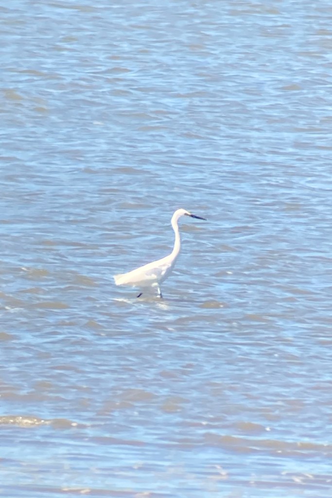 This presumptive Little Egret x Snowy Egret Hybrid was along the Presumpscot River in