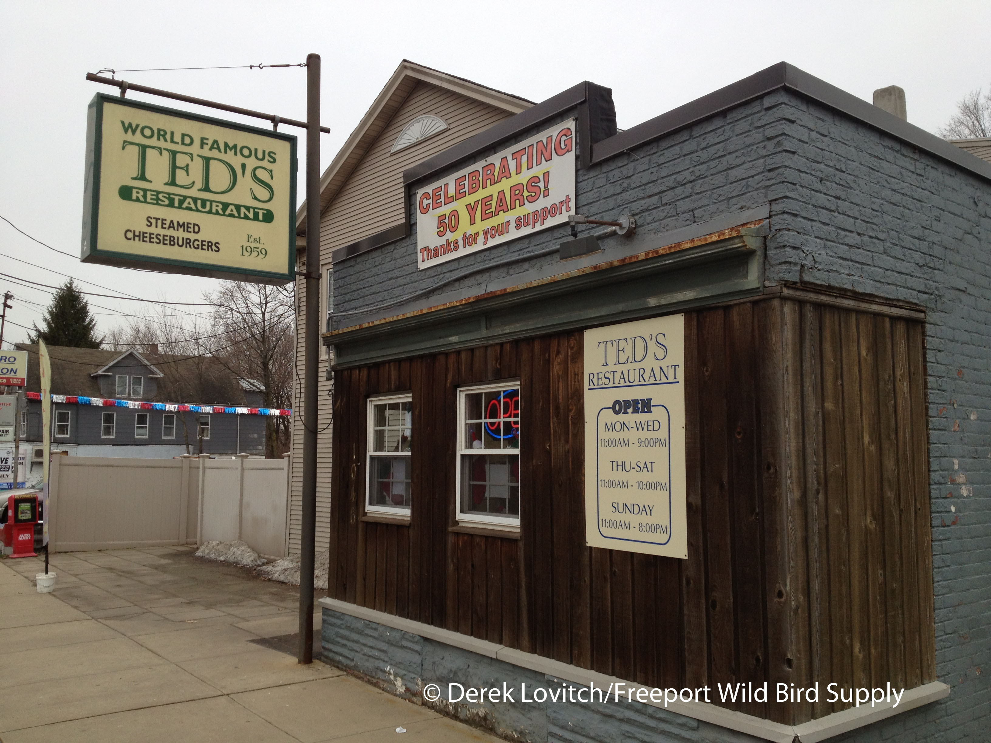 We had plans to bird in Connecticut with a friend on our way home on Sunday, but with the next storm rapidly approaching, we hit the road early and somehow stayed just ahead of the storm – nothing more than light rain or sprinkles from southern Connecticut all of the way to Freeport. Although light rain caught up with us as we had lunch in Meriden, CT, it was worth it as we visited the famous Ted’s for the local specialty, steamed cheeseburgers.