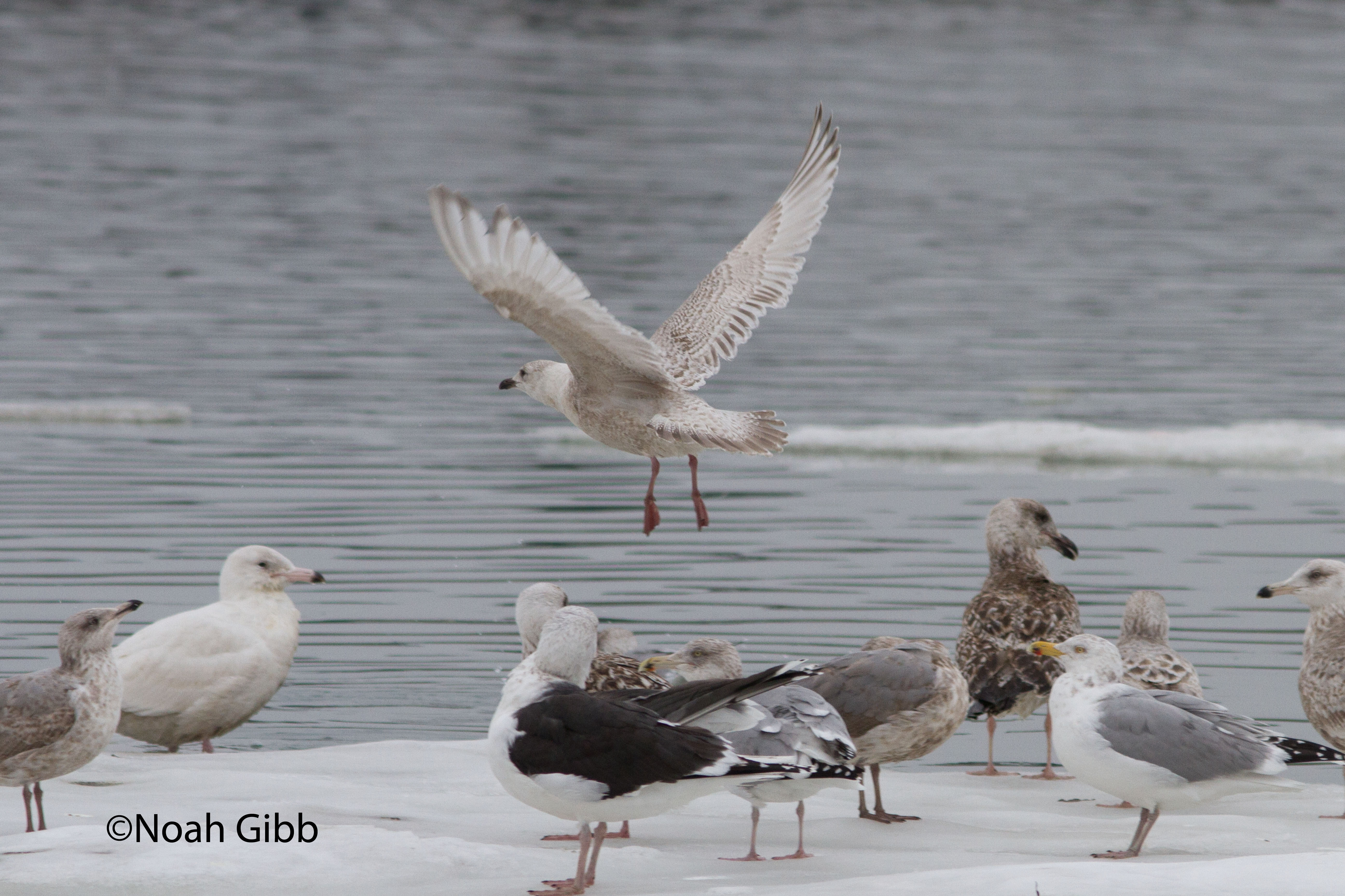 Essentially, the problem with this gull for each of the last four years is that it’s never been seen (to my knowledge) side-by-side with another white-winged gull. We’re therefore left with conjecture, comparing this bird to Herring and Ring-billed Gulls. What we really need is photos of this bird next to another Iceland-type gull. A direct comparison would do wonders for figuring this thing out for sure. Or a DNA test.