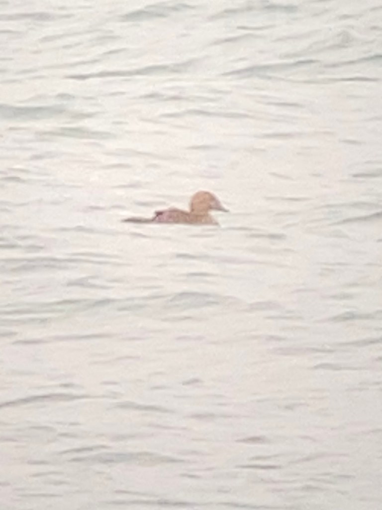 After breakfast, we decided to try and relocate a female King Eider that was reported yesterday and posted late at night. Since the seas were building on southwesterly winds, I decided to skip trying Lobster Cove and check the mouth of the harbor. And sure enough, there she was! The “Queen” Eider was an “Island Bird” for me, and an island bird for almost every birder on the island, if not a life bird for many in my group.