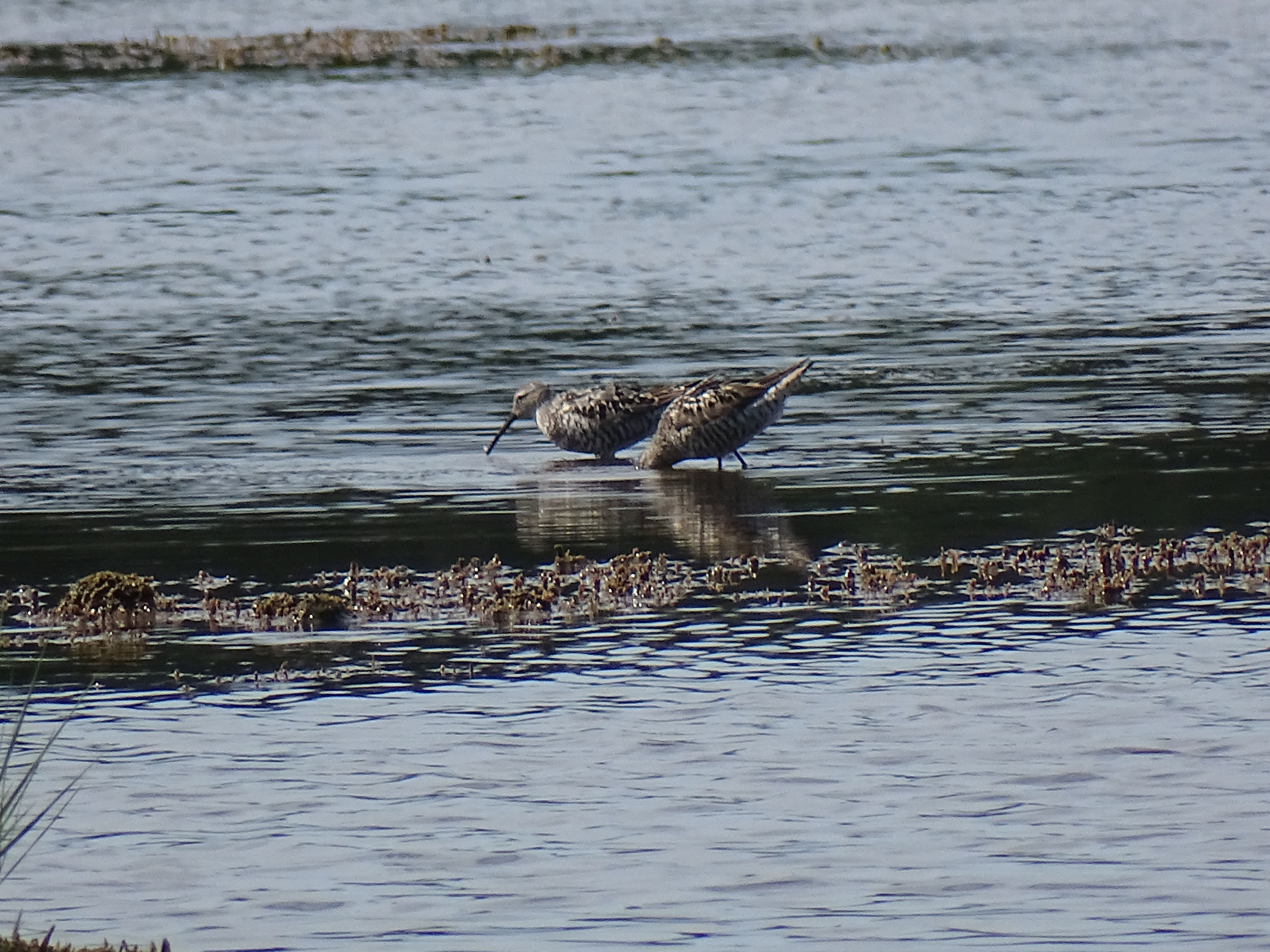 Kicking off our shoes to spend the rest of the morning on the sandflats of Hill’s Beach, we compared a Piping Plover to the many (400+) Semipalmated Plovers and 30 Black-bellied Plovers. A single juvenile Least Sandpiper was out of place on the beach, but offered a perfect opportunity to closely study the differences in shape, size, and overall structure to the 150 or so Semipalmated Sandpipers that were scattered about. 59 Short-billed Dowitchers gave us the chance to really observe shape and feeding styles, practicing identifying these birds both near and far.
