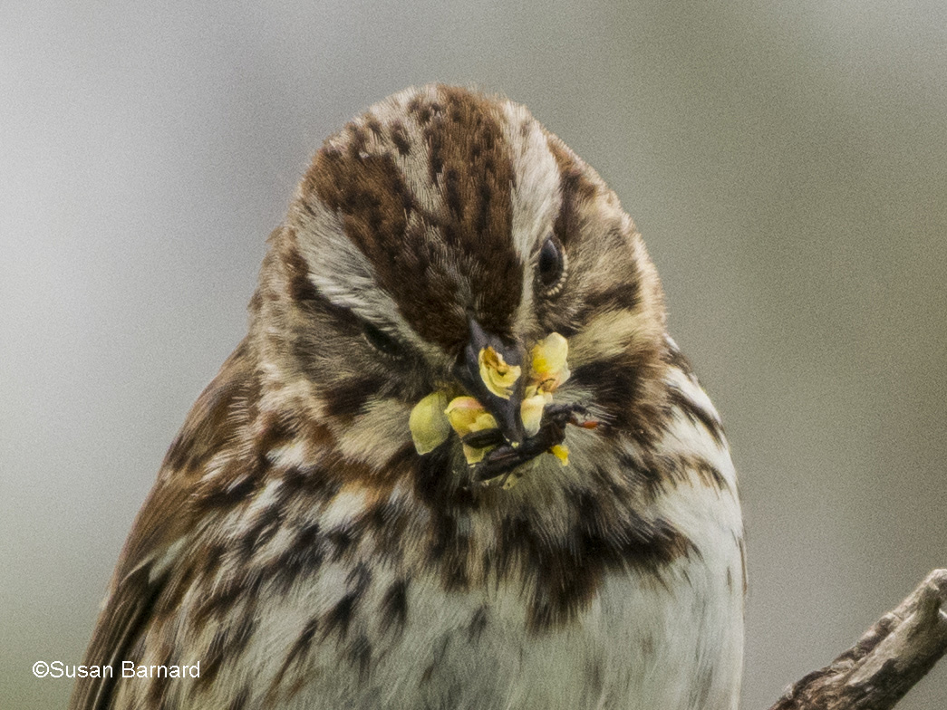 And as migrants were passing through, many of the island’s breeding species were well underway, such as this Song Sparrow gathering food for its nestlings.