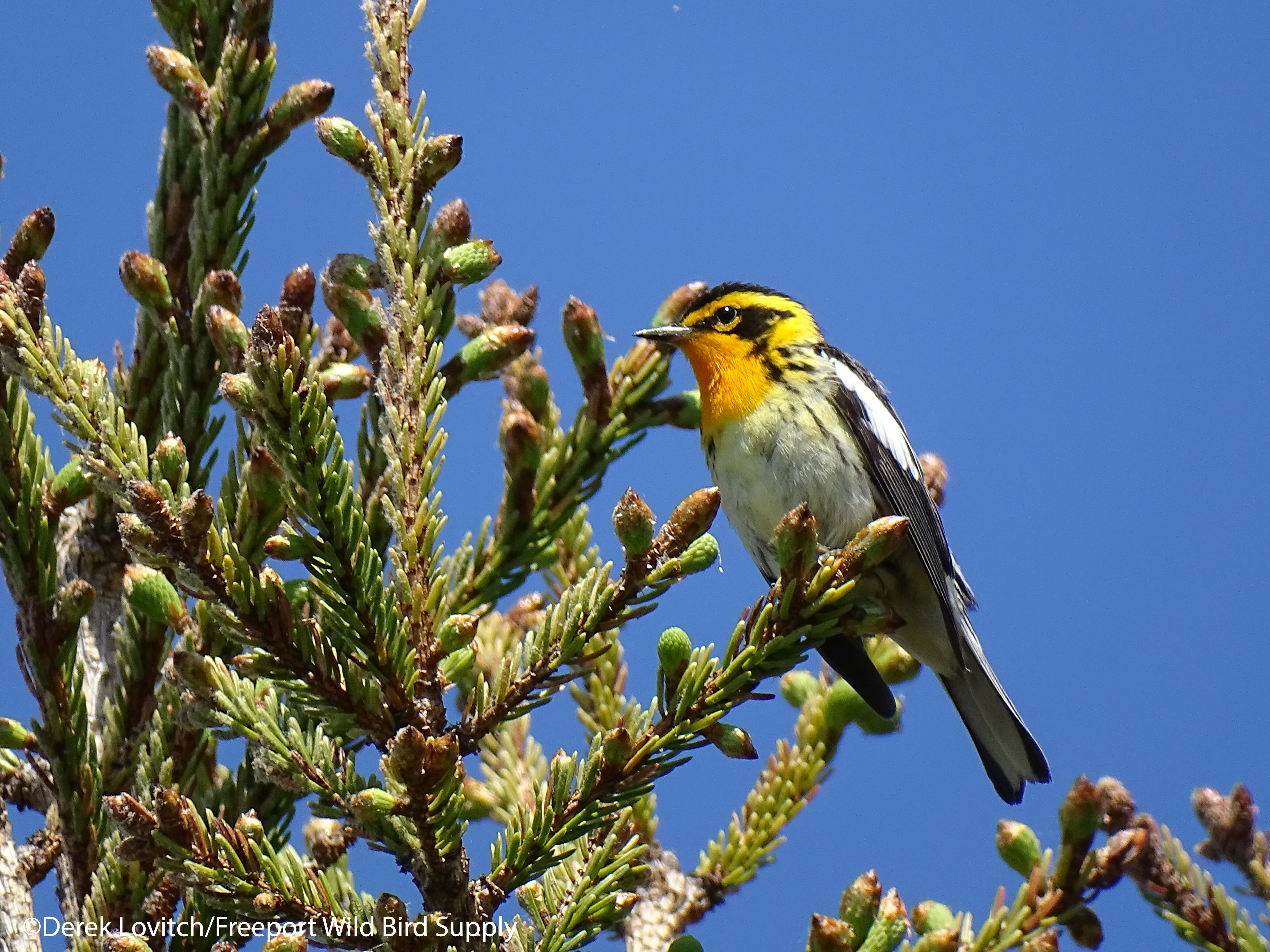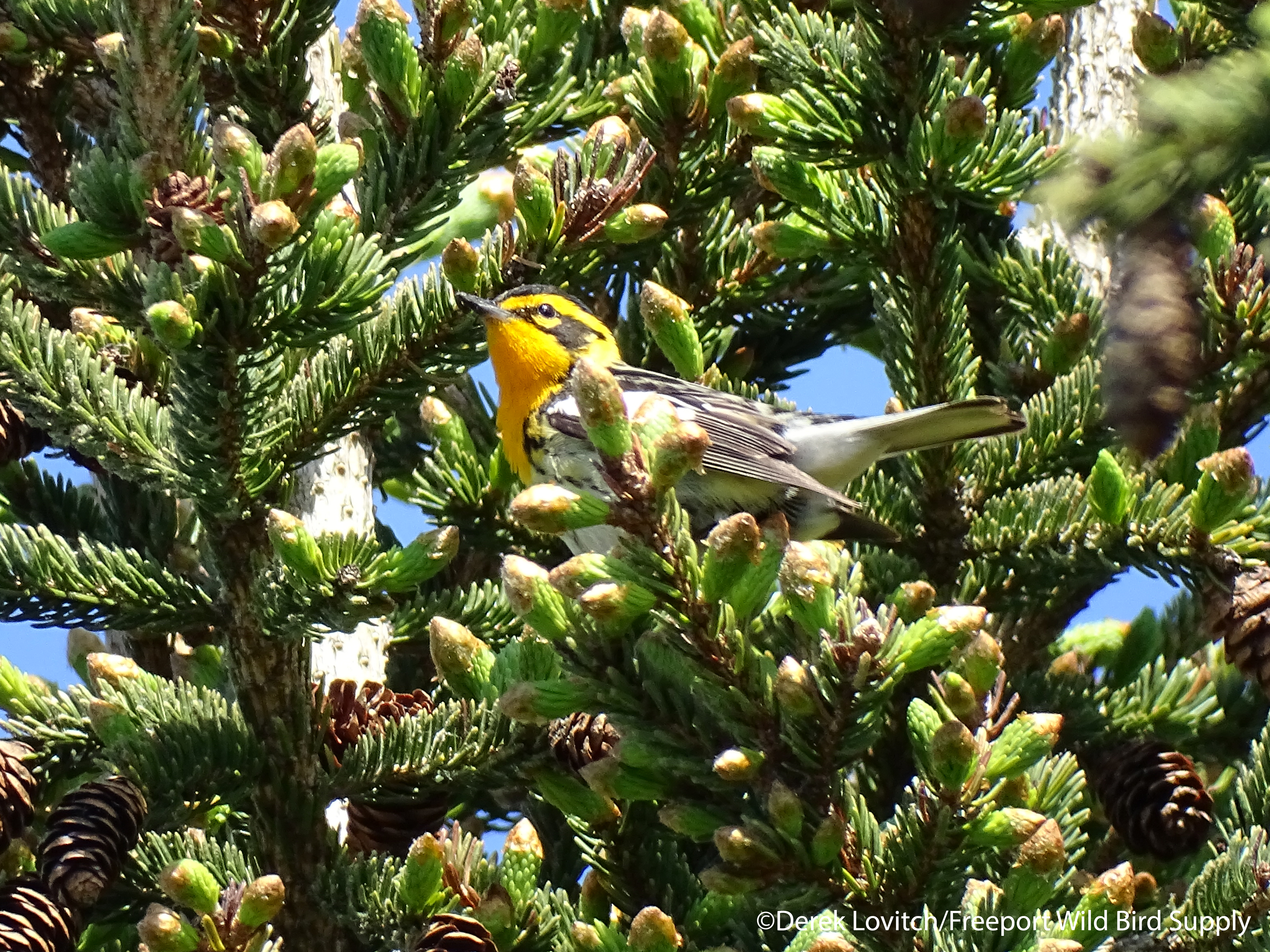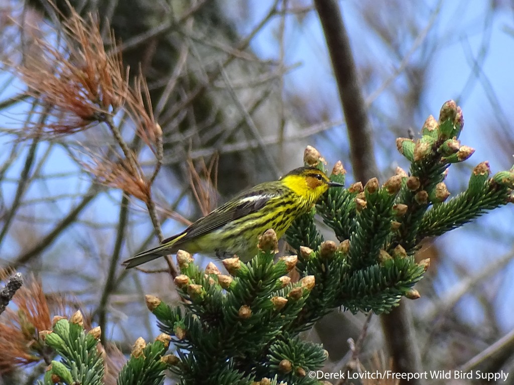 This Cape May Warbler showed himself nicely, feeding on little midges/flies buzzing around the buds of this Red Spruce.