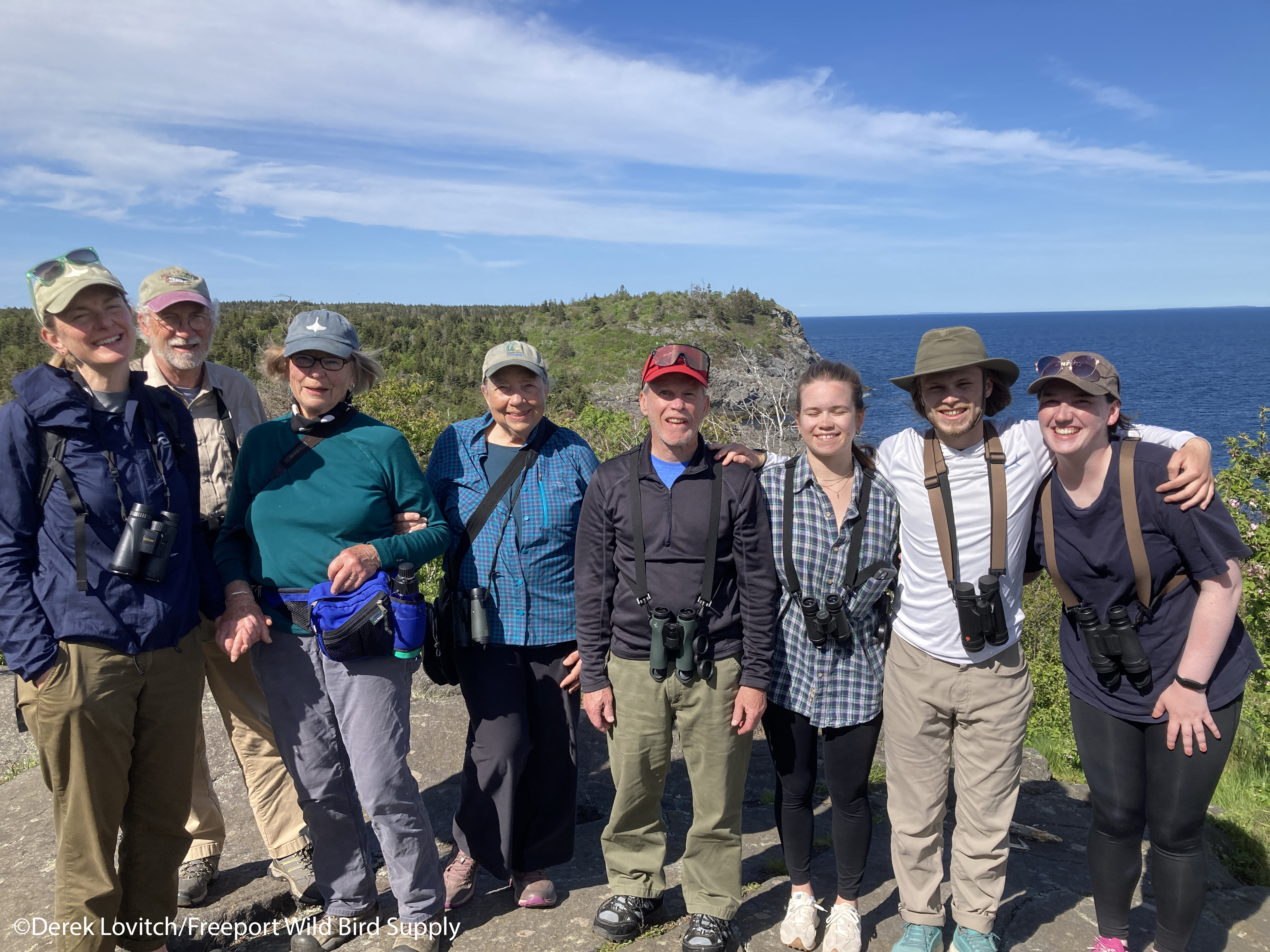 As expected, it was relatively slow overall, but even after the excitement of the ibis, we continued to enjoy ourselves. We had great looks at a lot of things all morning, including common warblers like American Redstarts and oodles of Blackpolls. We had our best looks yet of feeding Red Crossbills – they were all over the island this spring! – spotted a Peregrine Falcon, and continued to marvel at the growing flock of swirling Blue Jays contemplating a trip back to the mainland.