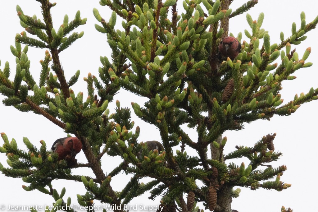 After breakfast, we had another good find when a Purple Martin flew over us, and a bigger flock yet of Red Crossbills entertained us for a while. Jeannette arrived and joined the group to help carry my scope and to take photographs for this trip report, as well as help us find more birds.