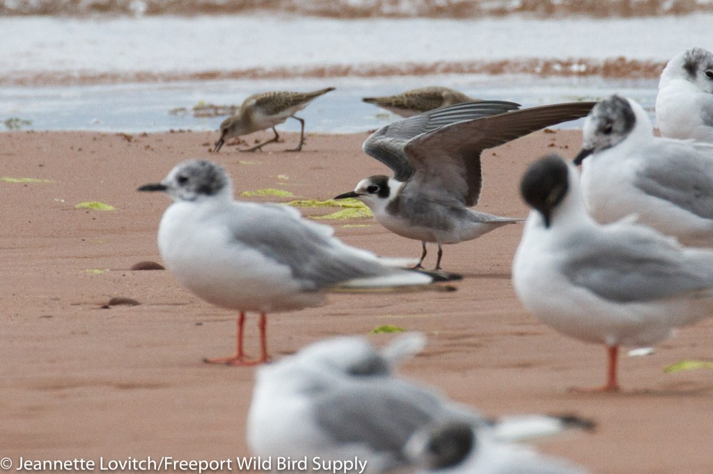 As per tradition in this blog, a photo of our meal of the trip! This was our “lifer” Kurdish food from Fener’s Place in Sackville. Since we have not had this cuisine before, it notched out the win from several great meals in Charlottetown and elsewhere throughout the tour. Then it was off to Prince Edward Island, our primary destination of the trip. Our first stop was Brackley Marsh, but rain caught up with us and it was absolutely pouring. Birding was not easy, although we found two good birds: Long-billed Dowitcher and “Western” Willet. However, it took us until the next morning to find what we were looking for…… this Gray Heron! A vagrant from Europe, this is the first we have seen in North America. With this trip cancelled for the last two years due to the closed border, it was serendipitous for it to show up when we could finally make it. A big thanks to our friend Dwaine for rising early and pinning it down for us!We were amazed by the number of Great Blue Herons all over the island, too, such as this group near Savage Harbor.Dwaine showed us around, and after lunch, we birded Borden-Carlton… …where we returned the favor by finding this very rare for the island Black Tern at Borden Beach.Standing next to Bonaparte’s Gulls and Semipalmated Sandpipers, you can see how tiny this marsh tern is.Jeannette was put in charge of documenting it thoroughly!We spent the next day vehicle-free in Charlottetown, starting with morning birding at Victoria Park, where we quickly tallied a dozen species of warblers in scattered mixed-species foraging flocks.After Charlottetown, we relocated to Goose River and the next morning began with sewatching at East Point. There, we found another mid-summer rarity in a first-summer male Harlequin Duck. Unfortunately, it was too distant for photos.Later, however, at Rollo Bay, we had plenty of opportunities for close shorebird photography, including ample numbers of Black-bellied Plovers.And Semipalmated Plovers.Common Tern fledgling following an adult. Six Red Knots were among the highlights here.On our last morning in PEI, we once again began at East Point, where we enjoyed 3 Pomarine Jaegers chasing Northern Gannets, a few more Razorbills, and a Mourning Warbler along the road.Then, as our last stop before crossing the bridge, it was back to Borden-Carlton Beach. We just could not get enough of the shorebirds here, and photographing them against the island’s red sand really makes them – especially these Sanderlings – pop!Sanderlings and White-rumped Sandpiper.We just could not get over, nor stop enjoying, the plethora of White-rumped Sandpipers that stage and pass through the island. We had counts of over 200 in some places, and in some beaches and salt pannes, it was the most abundant shorebird. Here at Borden Beach, we took some more time to marvel at it.Shorebirds tracks and probes.And photograph some more Semipalmated Sandpipers…bringing our trip full-circle before beginning the trek home.