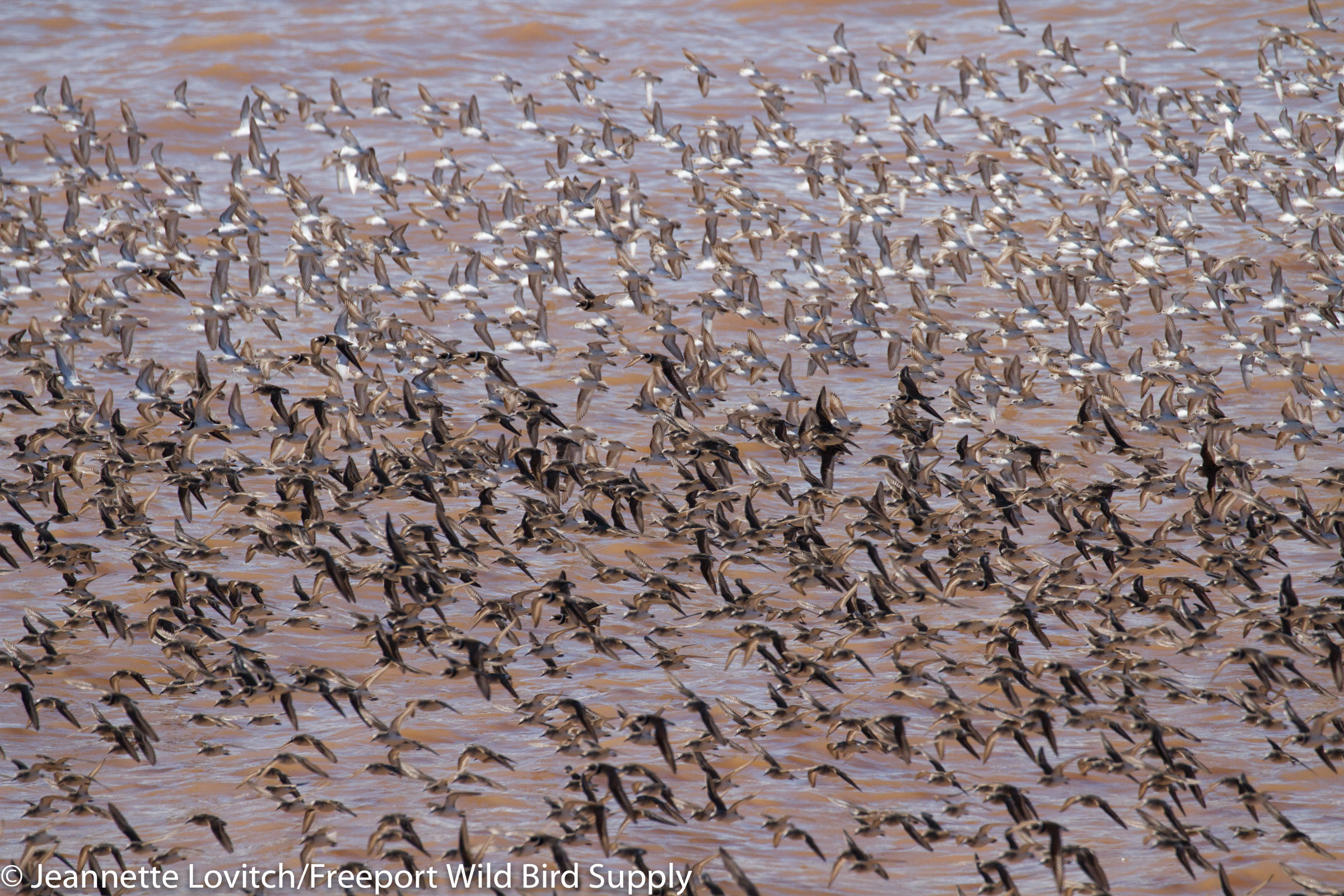 White-rumped Sandpiper: 80-100 adults, Eastern Road Trail, 8/24 (with Jeannette).