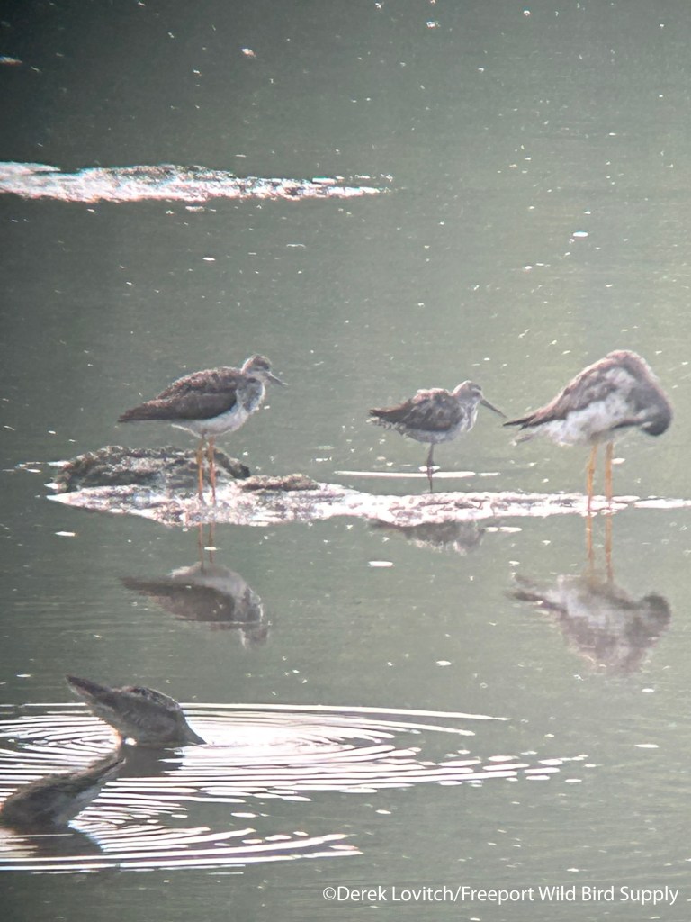3 Lesser Yellowlegs (first of “fall”) and 3-4 Least Sandpipers (first of fall), Walsh Preserve, Yarmouth, 7/8 (with clients from Maine).