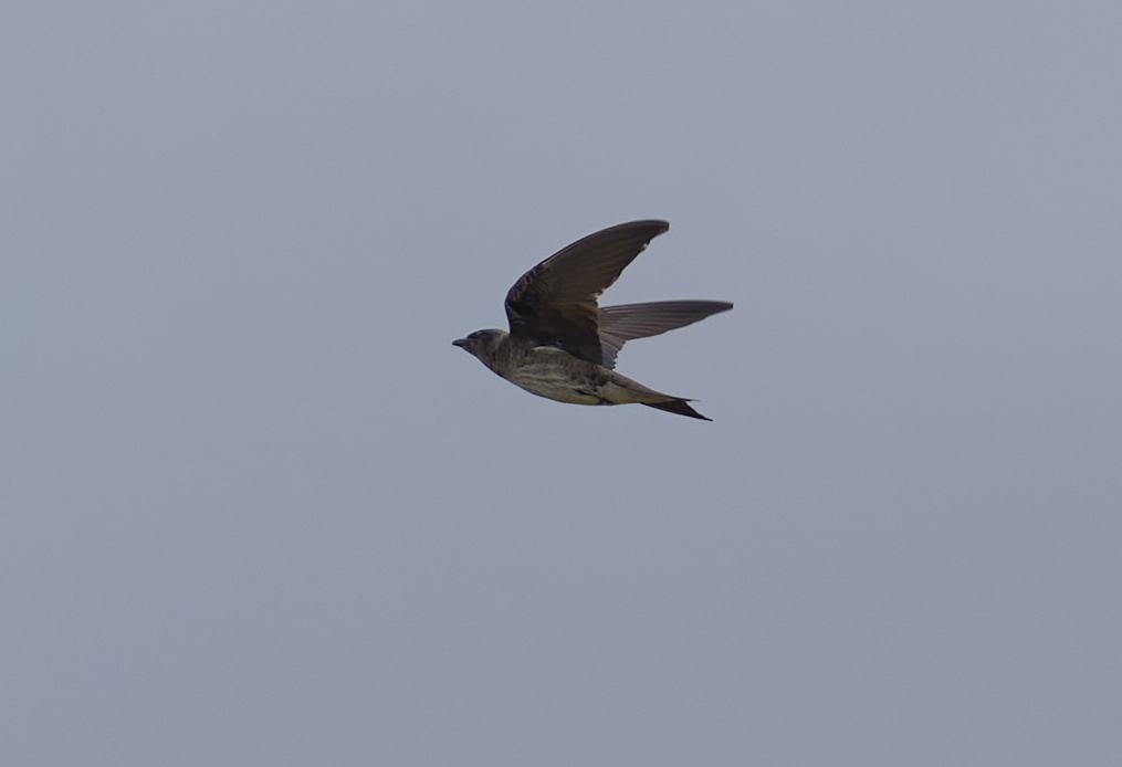 Any single martin away from a known colony is worth studying, especially “funny looking” ones, as vagrant martins have occurred in the Northeast. I spotted one such martin over Scarborough Marsh from the Eastern Road Trail while guiding on Thursday. Luckily, I shouted down the road to Bill Thompson and he was able to photograph the bird as it flew by. Together, we identified it as a 1st summer, likely female, Purple Martin. It sure looked strange as it was flying towards me.