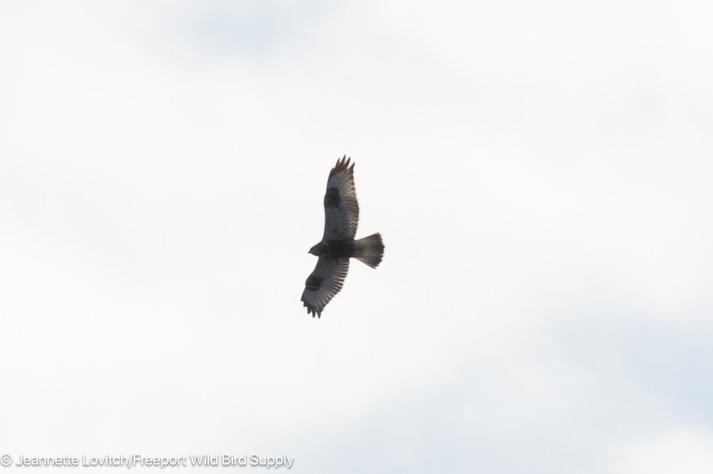 _2_ ROUGH-LEGGED HAWKS (been a long time for us in this territory! Only 2nd time there was been more than on on this CBC!) one dark morph (probable immature) and 1 light morph immature, both seen soaring and hunting late in the afternoon from the north end of the Footbridge parking lot. Dark-morph spotted around 2:30pm, and seen again at about 3:30pm when the light morph appeared. We lost the dark morph, but the light bird eventually glided overhead and disappeared over the treeline, heading south.